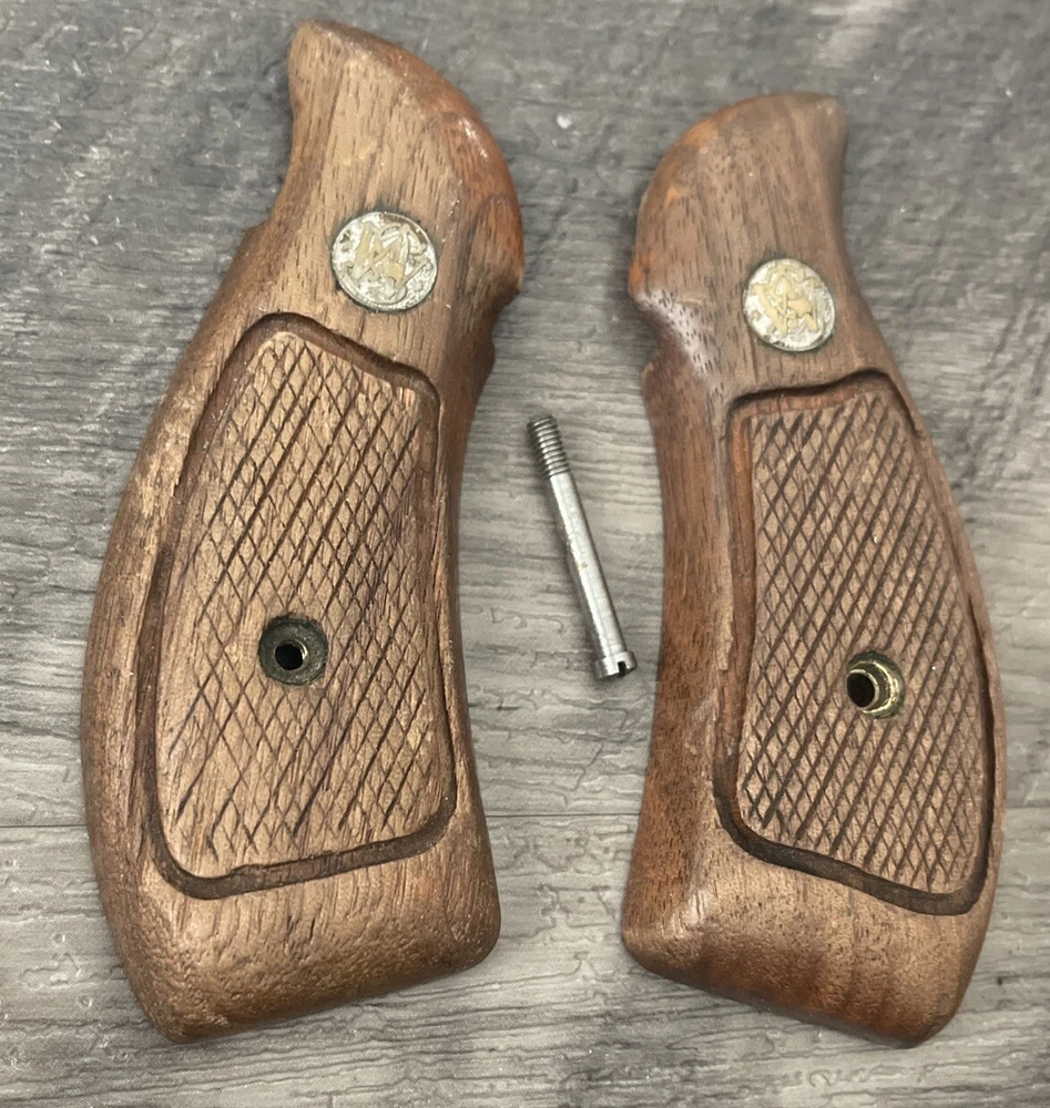 Smith & Wesson GRIPS & SCREW S&W K Frame 10 12 Revolver Wood Round Butt XV