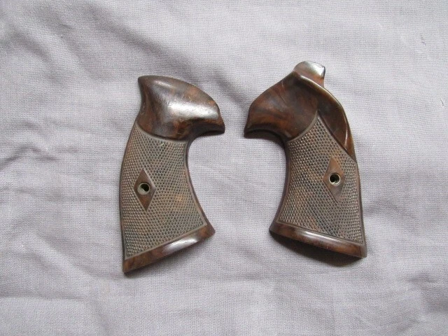 Enhance your Smith & Wesson M&P handgun with the genuine Franzite grips, designed specifically for the K Frame Round butt models. These grips feature a classic brown color that complements the firearm's aesthetic, offering a secure and comfortable hold during use. Crafted with precision in the United States, these grips are engineered to meet the exact specifications of your .357 Magnum caliber firearm. The robust construction ensures durability, while the sleek design aligns with the expectations of both collectors and enthusiasts alike. Keep your Smith & Wesson M&P feeling familiar and reliable with these high-quality Franzite grips . Please view photos to ensure you know what you're purchasing. Thanks for shopping! Bob's Gun & Tackle Shop LOCATION RT 24