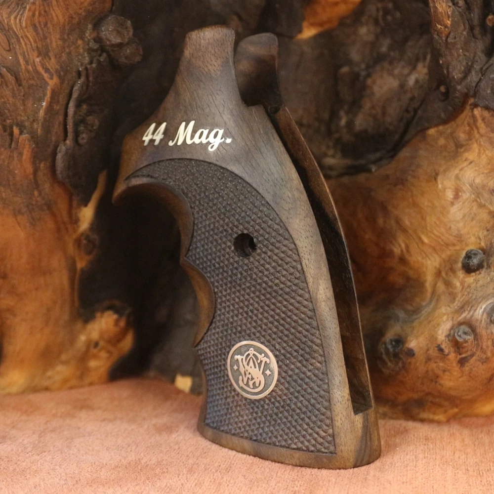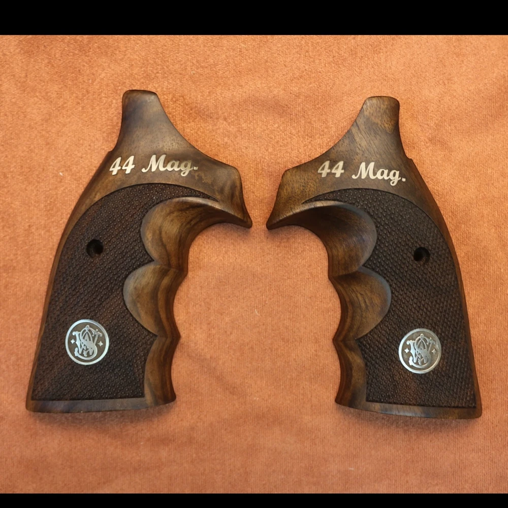 Smith Wesson N Frame Round Butt. Compatible Models: 44 MAGNUM (Models 21, 24, 25, 29, 325, 327, 329, 357, 610, 624, 625, 625, 627, 629, 657, 929) Note Not compatible with squarebutt stock type models. Our handles have a closed back. A set of interlocking screws and a set of pins are included to hold the wood tightly together. The wood material of our products is made of high quality Turkish walnut and the material of our logos is made of silver brass. All our products are guaranteed for 2 years. Within 60 days you can return the product free of charge.