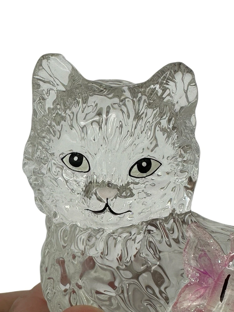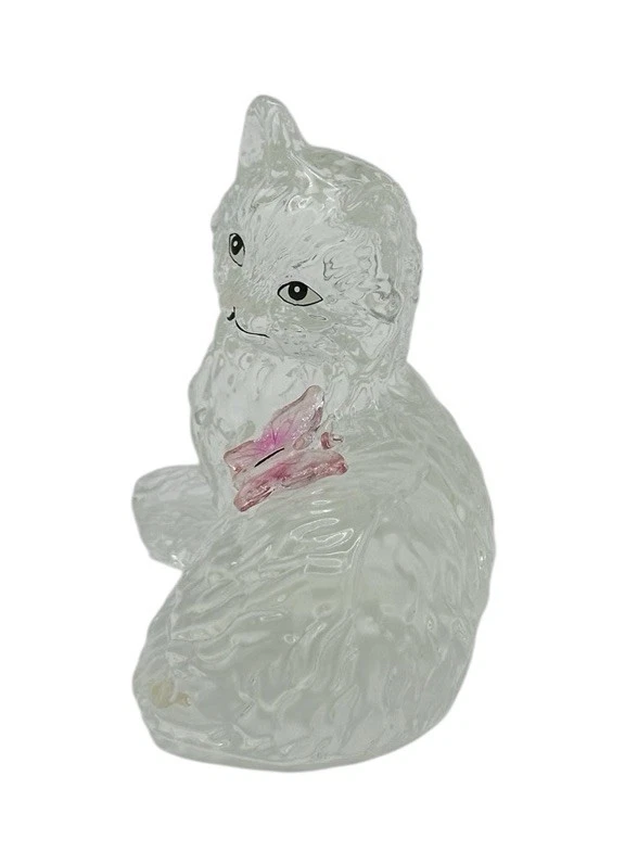$ 29.04VTG. 90s White Kitten Cat With GREEN EYES 4" Ceramic Figurine Pre-Loved