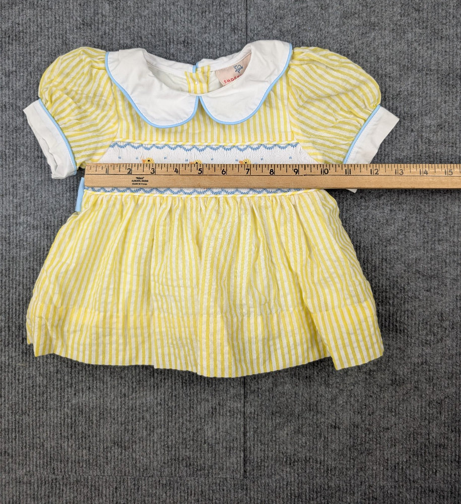 Brand: Smockingbird Department: Girls Type: Dress Size: 18 Months Color: Yellow / White Pattern: Striped / Smocked Ducks Material: 100% Cotton Sleeve Length: Short Sleeve Neckline: Peter Pan Collar Closure: Back Button Features: Smocked Panel, Embroidered Ducks, Lightweight, Classic Style Season: Spring, Summer, Easter