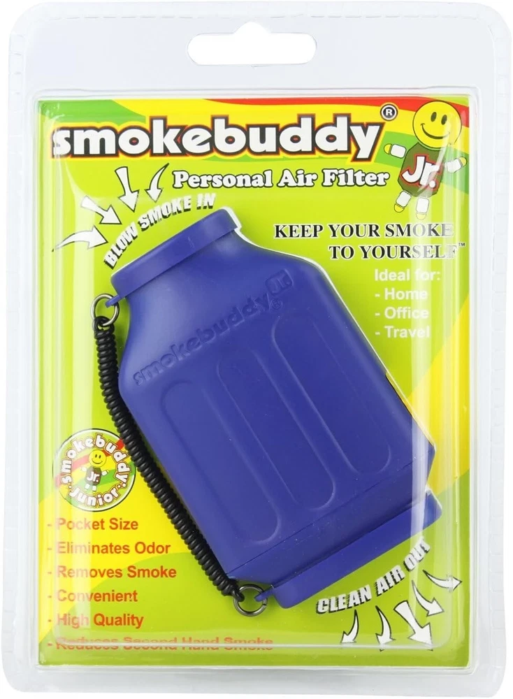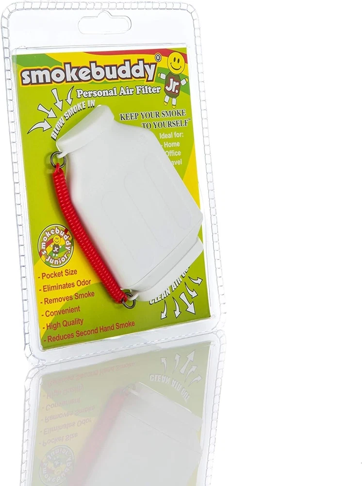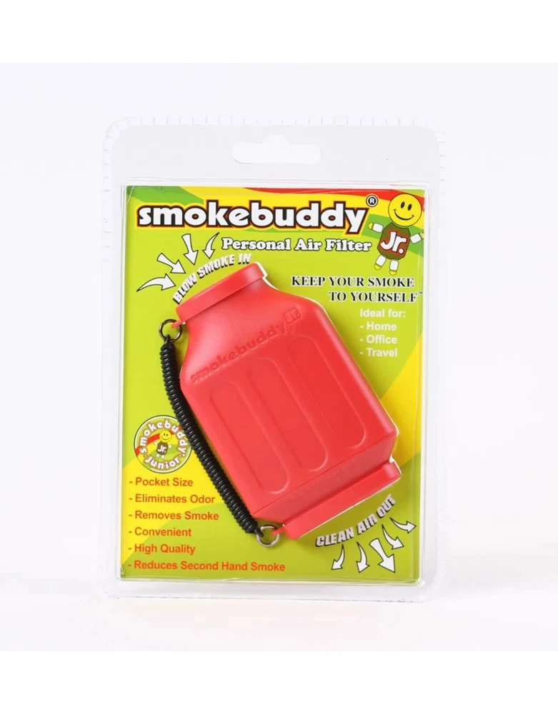 The Smoke Buddy Junior is the ultimate pocket-sized air filter for a discreet and odor-free experience. This compact device magically removes smoke and odor, ensuring clean air with every exhale. Perfect for home, office, travel, or anywhere you need to keep your sessions private. Designed to fit conveniently in your pocket or bag, it's the ideal companion for smokers or vapers on the go. Features: Compact and portable design Magically eliminates smoke and odor Provides up to 200 uses Environmentally friendly and reusable Includes travel caps for discreet storage Keeps secondhand smoke away from others Included: 1 x Smoke Buddy Junior Air Filter 1 x LED Keychain Light 2 x Travel Caps Available Colors & Designs: Black | Blue | White | Purple | Glow in the Dark (White & Blue) | Red | Lime Green | Yellow | Teal | Orange | Green | Pink Say goodbye to lingering odors and hello to fresh, clean air with the Smoke Buddy Junior . It's the compact solution for discreet, worry-free sessions.