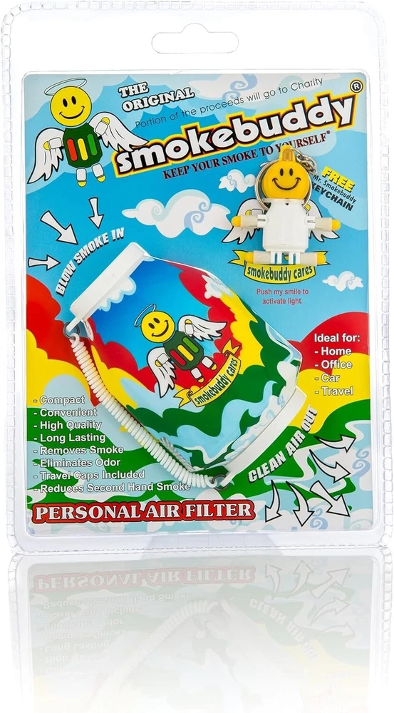 The Smoke Buddy Original is the perfect solution for eliminating smoke and odor in a discreet and efficient manner. Whether you're at home, in the office, traveling, or even attending special events, this compact device ensures a smoke-free and odorless environment. Simply exhale through the Smoke Buddy, and clean air comes out the other end. With its travel cap and long-lasting design, it's easy to carry and use anywhere. Features: Effectively eliminates smoke and odor Long-lasting design with over 300+ uses Compact and portable, perfect for travel Comes with a travel cap for discreet storage Available Designs: Evil Buddy | Black | White | Orange | Green | Teal | Lime Green | Camo Edition | Las Vegas Edition | Yellow Tie-Dye Edition | Blue | Red | Grenade | Cares | Wood | Purple | Pink Choose your favorite design and enjoy fresh, odor-free air anytime, anywhere with the Smoke Buddy Original !