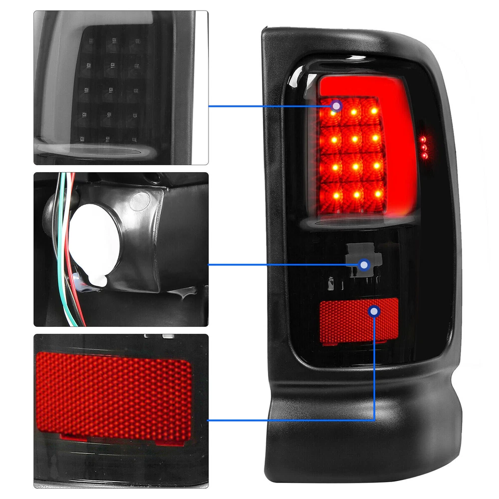 Smoke Lens LED Tail Lights Brake Lamp DOT For 1994-2001 Dodge Ram 1500 2500 3500