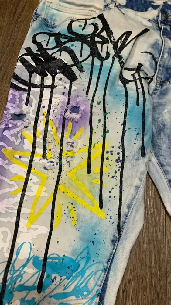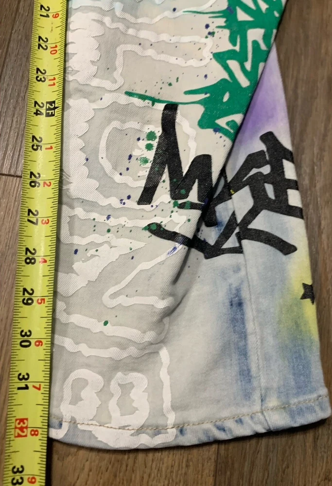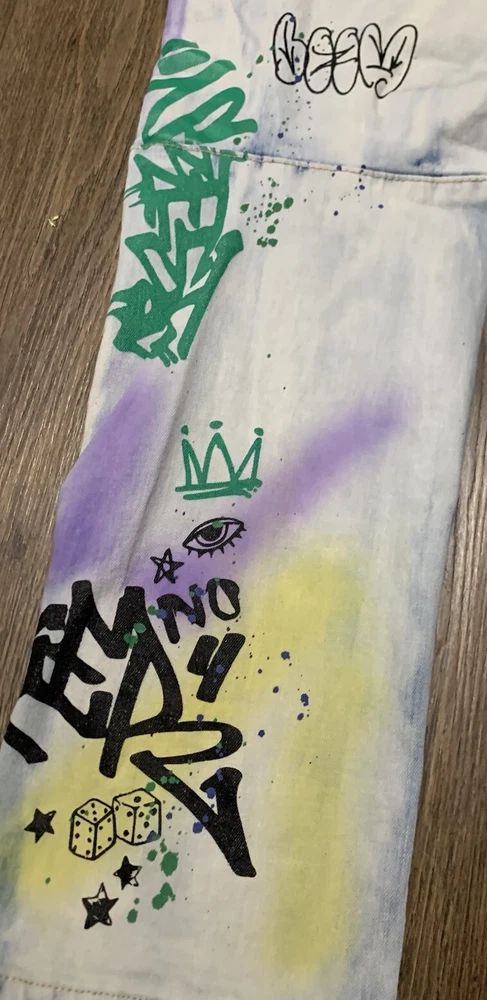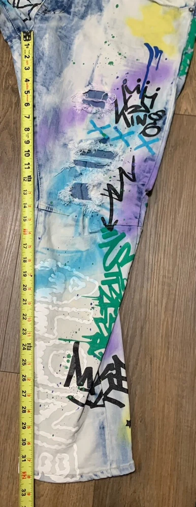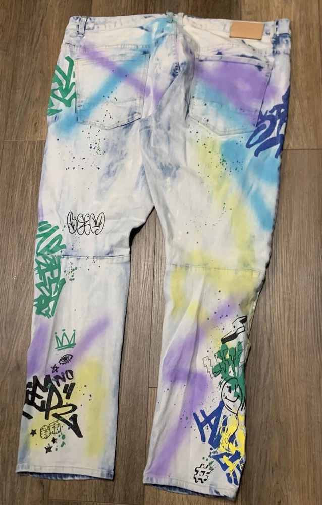 Elevate your street style with these Smoke Rise Denim Co Graffiti Jeans, tailored for those who appreciate a relaxed fit and versatile design. The size 42x32 ensures a comfortable mid-rise fit, while the tapered leg openings create a sleek silhouette suitable for any casual occasion. Featuring a vibrant multicolor graffiti pattern, these jeans are a standout piece that effortlessly complement your unique aesthetic. Crafted from a durable cotton blend, these jeans are designed to withstand the demands of everyday wear. They come equipped with a classic 5-pocket design, zip and button closure, and a lightly washed fabric that offers a timeless look. With the added distressed details, these jeans are perfect for expressing your hip hop skate-inspired theme, making them an essential addition to your wardrobe. Machine washable for easy care, they are suitable for all seasons.