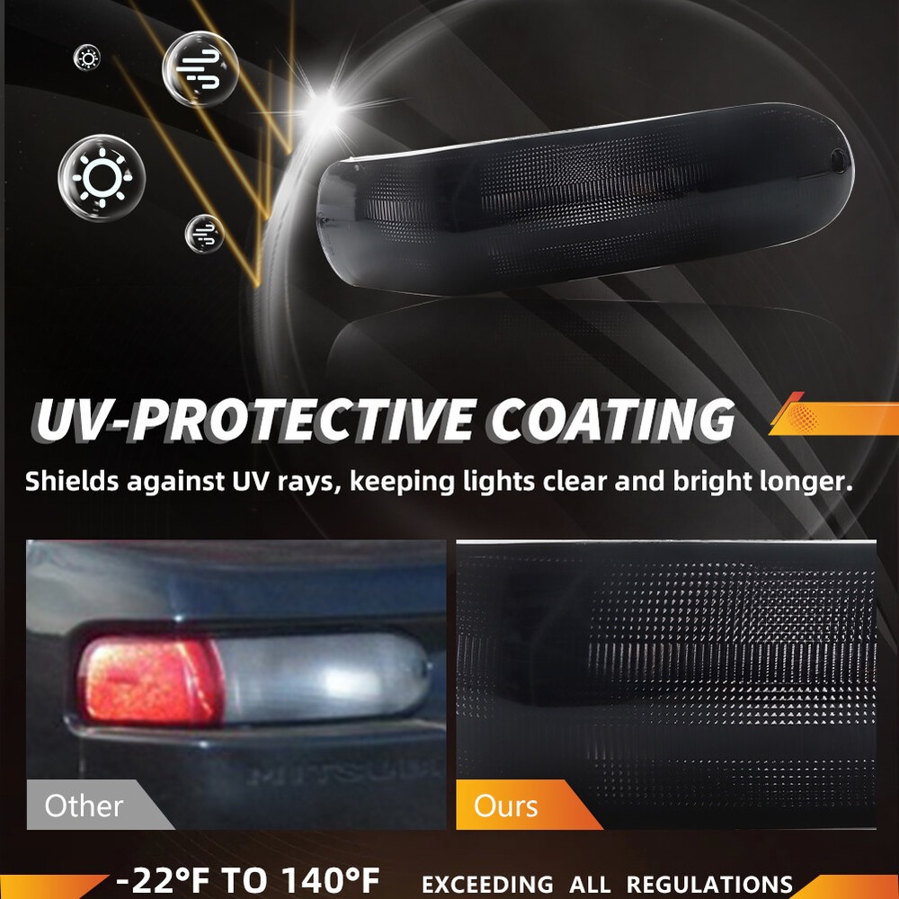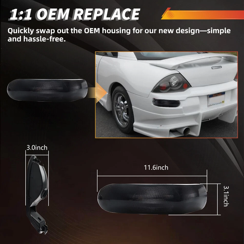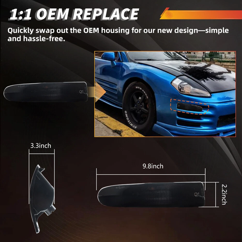Product Detail Copyright©MotoringPlus Details This page features Two Pairs (4 Pieces) Smoke/Tinted Lens Front & Rear Bumper Turn Signal Lights Kit For 2000-2002 Mitsubishi Eclipse These lamps are made with high-quality Polymethy l Methacrylate (PMMA) and Polycarbonate (PC) plastics No modification required! Each piece is easy to install with an OEM fit, Instantly transform your car and give it a modern and trendy appearance and feel! Note: Bulbs & socket adapters are NOT included Specifications: 100% Brand new and quality Lens Color: Smoke/Tinted A complete set of four lamps, replacement for the driver side & passenger sides Compatible With 2000-2002 Mitsubishi Eclipse Directly replace or repair your car's front & rear bumper turn signal lamps CE DOT SAE approved Application: For 2000 2001 2002 Mitsubishi Eclipse Front Signal Light - Replace OEM # MI2530108, MI2531108; MR496325, MR496326 Rear Signal Light - Replace OEM # MR496329, MR496330; MI2883101, MI2882101 Please make sure you have available space in your car for these lamps to fit before placing or der. Package include: 2PCS Driver & Passenger side Front Bumper Turn Signal Lights (Smoke/Tinted Lens) 2PCS Driver & Passenger side Rear Bumper Turn Signal Lights (Smoke/Tinted Lens) Installation: Direct replacement the OEM parts without any modification needed Note: Professional installation is highly recommended! Returns Policy Shipping Policy Payment Method About US Contact Us Returns Policy Please check actual stock bulb model & housing size before purchasing replacement bulbs. Compatibility list on eBay listing is not a complete list and it is a known issue that there are errors on it. Half year warranty from the purchased date. Please contact us via ebay message before returning the defectived item. Our warranty does not extended to any products that are physically damaged or that are not under normal operating conditions as a result of misuse or improper installation on the buyers/user's part. Return items should include the original packaging and all accessories. Buyers MUST contact us for the returning address. In all cases, buyers pay shipping fees at their own cost to return products for exchange or refund. We will be responsible for the postage of replacements. Refund will be made upon receipt of the returned item. Our goal is to make sure you are a happy buyer and pleasant shopping with us. If you have any problems, please contact us immediately before leaving us any negative or neutral feedback. We understand the concerns and frustrations you might have, and will do our endeavor to resolve the issues. Please give us the opportunity to resolve any problem. Shipping Policy Item will be shipped from China / Hongkong Post by Standard International Post. All orders will be shipped to buyer's paypal shipping address within 24 hours after receiving your verified payment (Excluding Weekends and Public Holidays) International order may takes about 15-25 business day delivery time for most countries. Transactions on weekends or public holidays,item will be sent later on work time. Payment Method We accept Paypal ONLY. Unpaid transaction will be cancelled after 8 days About US Contact Us We are dedicated to providing you the best shopping experience and high quality items at a very low price. If you are satisfied with our service,Please remember to leave us 5 STAR for All Detailed Seller Ratings If you found any problem/issue of our merchandise/service,please let us know before leaving any negative feedback! Please feel free to contact us if you have any question. Any message will be replied within 24 hours. We will try our best to help! Home Payment Shipping About us Contact us Copyright©MotoringPlus Home Payment Shipping About us Contact us Store Categories Store Categories SIDE MARKER LIGHT TURN SIGNAL LIGHT TAIL BRAKE LIGHT LICENSE PLATE LIGHT DECODER OTHERS Other Product Detail Copyright©OFFKAT Why Buy From Us Why Buy From Us Details This page features Two Pairs (4 Pieces) Smoke/Tinted Lens Front & Rear Bumper Turn Signal Lights Kit For 2000-2002 Mitsubishi Eclipse These lamps are made with high-quality Polymethy l Methacrylate (PMMA) and Polycarbonate (PC) plastics No modification required! Each piece is easy to install with an OEM fit, Instantly transform your car and give it a modern and trendy appearance and feel! Note: Bulbs & socket adapters are NOT included Specifications: 100% Brand new and quality Lens Color: Smoke/Tinted A complete set of four lamps, replacement for the driver side & passenger sides Compatible With 2000-2002 Mitsubishi Eclipse Directly replace or repair your car's front & rear bumper turn signal lamps CE DOT SAE approved Application: For 2000 2001 2002 Mitsubishi Eclipse Front Signal Light - Replace OEM # MI2530108, MI2531108; MR496325, MR496326 Rear Signal Light - Replace OEM # MR496329, MR496330; MI2883101, MI2882101 Please make sure you have available space in your car for these lamps to fit before placing or der. Package include: 2PCS Driver & Passenger side Front Bumper Turn Signal Lights (Smoke/Tinted Lens) 2PCS Driver & Passenger side Rear Bumper Turn Signal Lights (Smoke/Tinted Lens) Installation: Direct replacement the OEM parts without any modification needed Note: Professional installation is highly recommended! Returns Policy Shipping Policy Payment Method About US Contact Us Returns Policy Our 60-day Satisfaction Guarantee assures our customers that they will receive all orders promptly and exactly as described. In addition, it allows customers to return new and unused products in their original factory condition for any reason within 60 days from the date of purchase. Buyers are responsible for appropriate packing, returning shipping cost, insurance and returning the item in "new" condition. Used items will not be accepted for return. We will replace the returning item with an identical item, issue a full store credit or a full refund. Our goal is to make sure you are a happy buyer and 