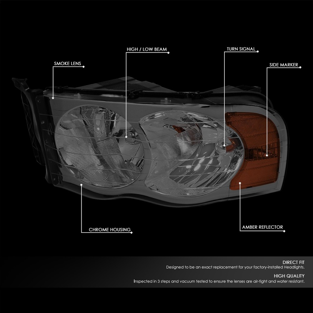 Smoked Tint Headlight Amber Corner with 6000K White LED System for 02-05 Dodge Ram