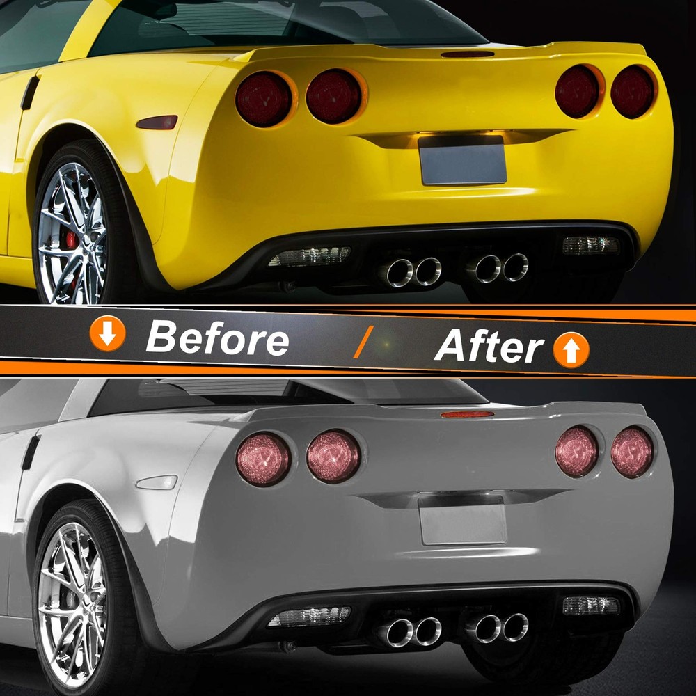 Package Includes: 4 x Taillights Tint Overlays 1 x Third Brake Light Tint Overlays 2 x Rear Markers Lights Tint Overlays 2 x Reverse Lights Tint Overlays 1 x Squeegee 1 x Microfiber Cloth Compatibility : with 2005-2013 Corvette C6 Specification: Color: smoked Material: vinyl Our tint film made from high quality scratch-resistant and weather resistant vinyl is applied dry Designed with special channels which make creases and without any bubbles The back of our taillight overlays is adhesive, which allow you to reposition multiple times in case some adjustment is needed Disclaimer: Please check with your local laws and regulations concerning the legality of this film. We make no claim regarding the legality of the product or represents them as legal in any state. Fitment: with 2005 2006 2007 2008 2009 2010 2011 2012 2013 Chevrolet Corvette C6 tail lights, third brake light, rear markers and reverse lights (NOTE:just wipe the light when using, do not spray water to the film) Designed with Special Vinyl Channel: Adopting special technology allows you to push the liquid and bubbles out easily, no creases in the tint wrap film. give your vehicle blacked out look Light Lens Protection: Made from the high quality cast vinyl, which makes your taillights, side marker and brake lights scratch-resistant and weather resistant. The back of the tint kits is adhesive, not easily peel off after go through heavy rain, car wash, extreme heat and cold Easy to Install: This is precut overlays, no modification or trimming needed, just tear off the film and apply the tint cover to your lights. recommend wrapping the corners with a heat or hairdryer to stick better Package Including: 4 x taillights vinyl film + 1 x third brake light tint covers + 2 x rear markers lights tint overlays + 2 x reverse lights film + 1 x squeegee + 1 microfiber cloth.