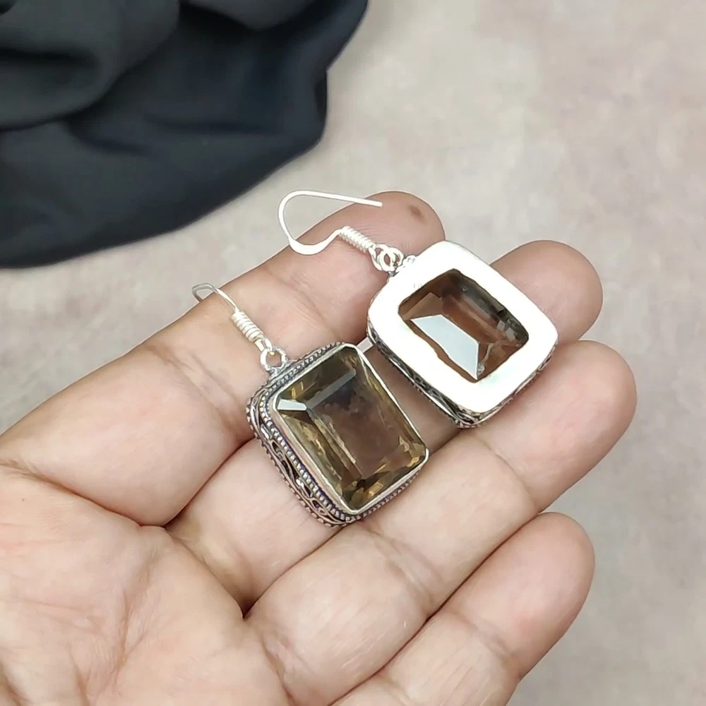 Smokey Quartz Gemstone Earring 925 Sterling Silver Earring Handmade Jewelry Gift