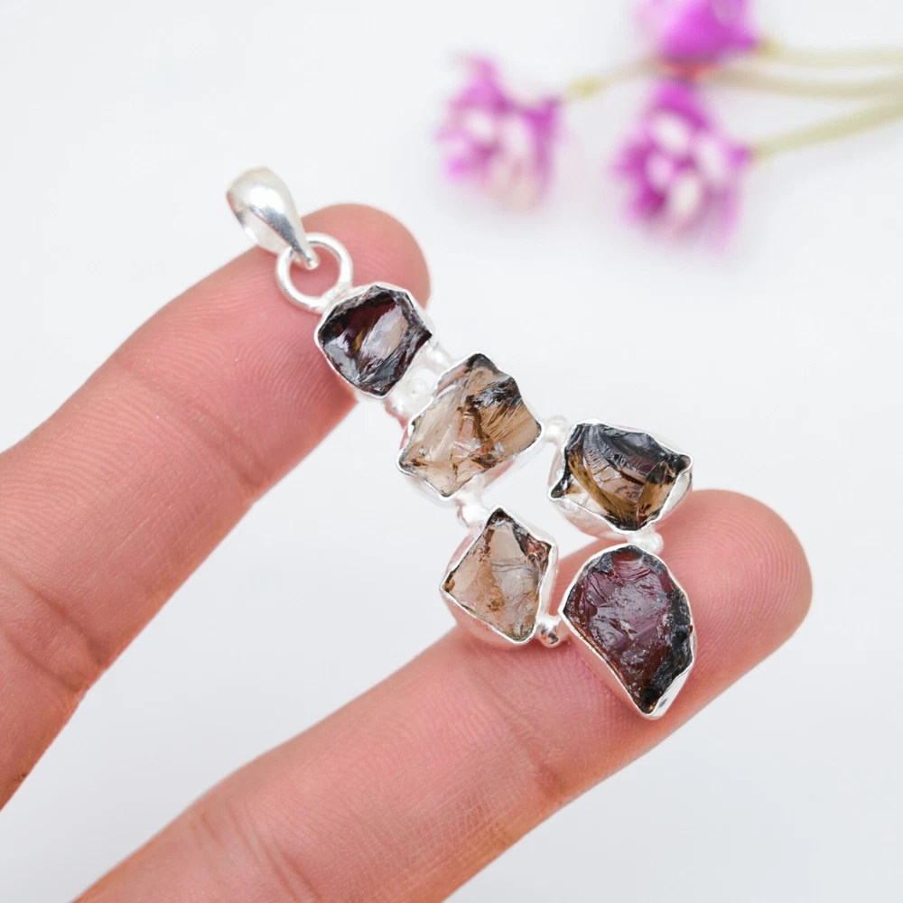Features:HandmadePendant Shape:Same As PictureNumber of Gemstones:5Type:PendantNumber of Diamonds:N/APendant/Locket Type:Same As PictureMain Stone Color:BrownCut Grade:N/AMetal:Sterling SilverCollection:HandmadeDiamond Color Grade:N/ATheme:Beauty, Bohemian, Ethnic, Halloween, Love, NatureMetal Purity:925Chain Type:N/ACertification:N/ANecklace Length:N/AClosure:Same As PictureOccasion:Anniversary, Birthday, Christening, Christmas, Engagement, Father's Day, Graduation, Mother's Day, Valentine's Day, WeddingMain Stone:Smokey QuartzDiamond Clarity Grade:N/AMain Stone Creation:NaturalStyle:PendantBrand:HandmadeCountry/Region of Manufacture:IndiaCountry of Origin:IndiaSecondary Stone:Smokey QuartzColored Diamond Intensity:N/ABase Metal:Sterling SilverColor:SilverTotal Carat Weight:10 carat and aboveMain Stone Shape:Same As PictureSetting Style:BezelMain Stone Treatment:Not EnhancedMaterial:Gemstone