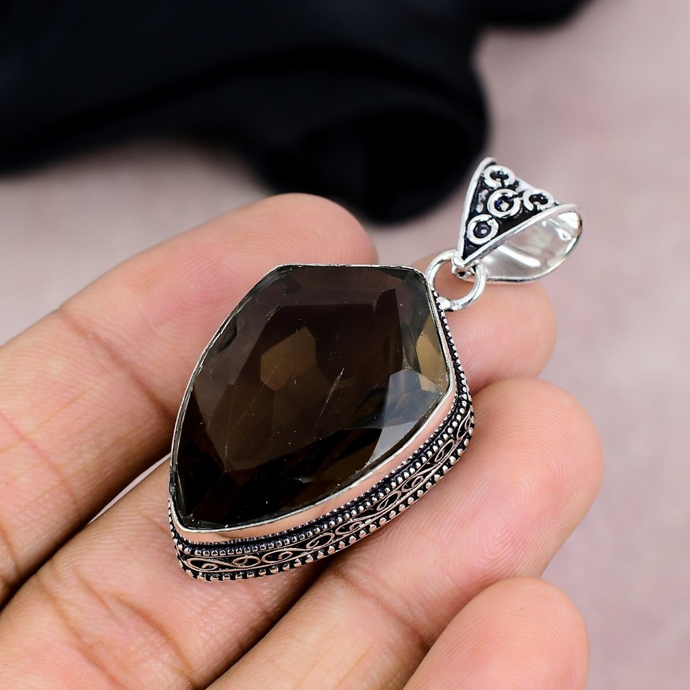 Occasion:Anniversary, Birthday, Christening, Christmas, Engagement, Father's Day, Graduation, Mother's Day, Valentine's Day, WeddingMain Stone Creation:NaturalType:PendantBase Metal:Sterling SilverChain Type:N/ANumber of Diamonds:N/ACertification:N/AMain Stone Color:BrownColored Diamond Intensity:N/ATotal Carat Weight:10 carat and aboveCountry/Region of Manufacture:IndiaMain Stone:Smoky QuartzSetting Style:BezelColor:SilverMain Stone Shape:Same As PictureMetal:Sterling SilverCountry of Origin:IndiaPendant/Locket Type:Same As PictureMain Stone Treatment:Not EnhancedClosure:Same As PictureMetal Purity:925Collection:HandmadeStyle:PendantCut Grade:N/ANumber of Gemstones:1Theme:Beauty, Bohemian, Ethnic, Halloween, Love, NaturePendant Shape:Same As PictureNecklace Length:5.2"Brand:HandmadeDiamond Color Grade:N/AFeatures:HandmadeDiamond Clarity Grade:N/ASecondary Stone:N/AMaterial:Gemstone