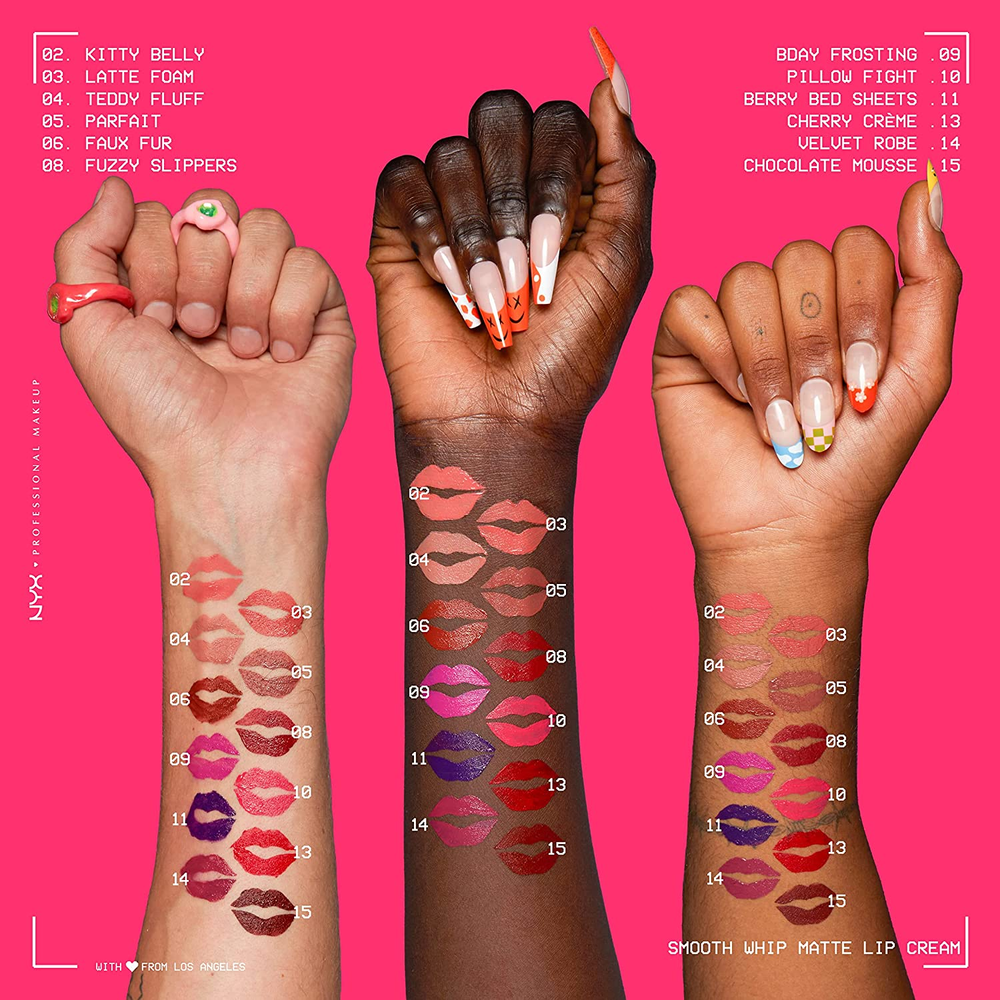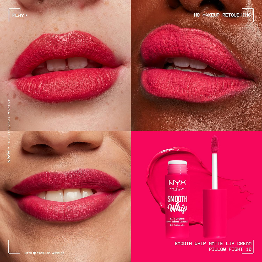 Smooth Whip Matte Lip Cream, Long Lasting, Moisturizing, Vegan Liquid Lipstick - Pillow Fight (Hot Fuschia) Smooth Matte Lip Cream: Introducing our new ultra-sensorial lip smoothing obsession. For a real life smooth effect with lip smacking color payoff. Get ultra vibrant matte finish lip make up shades whipped with moisturizing shea and cocoa butters Say Goodbye to Texture and Lines: Get smooth and nourished lips with this long lasting vegan liquid lipstick. Designed with a scoop matte lipstick applicator that hugs your lips for the perfect application. Get textureless lip color in just one swipe Lip Products for the Perfect Pout: Doll your lips in creamy, long lasting perfection; Try our complete line of lip makeup including liquid lipstick, lip gloss, lip cream, lip liner and butter gloss Cruelty Free Cosmetics: We believe animals belong in our arms, not in a lab; All of our makeup is certified and acknowledged by PETA as a cruelty free brand; We don't test any of our products on animals Discover NYX Professional Makeup: Try all of our professional makeup products today from eyeshadow, eyeliner, and false lashes to liquid lipstick, lip gloss, primer, concealer, setting sprays and eyebrow makeup Introducing Smooth Whip Matte Lip Cream, never before seen vibrant lip smoothers. Giving all day smooth sensation while nourishing your lips for all day comfortable wear. Get your smooth on with 24 vibrant lip smacking smooth shades in a comfortable matte finish that deliver maximum color payoff in just one swipe. Say goodbye to texture and lines with Smooth Whip Matte Lip Cream, which gives a real life smoothing filter for your lips. You're going to want to whip it real good. Try all of our professional makeup and beauty products today, from eyeshadow, eyeliner, mascara and false lashes to lipstick, foundation, primer, blush, bronzer, brushes and more. Dimensions 0.39 inches x 0.39 inches x 1.57 inches. Weight: 0.63 oz Specifications Item model number 0800897131203 Color 10 Pillow Fight Item Form Liquid Product Dimensions 0.39 x 0.39 x 1.57 inches; 0.63 ounces Country of Origin Taiwan Skin Type All Finish Type Matte Size 0.13 Fl Oz (Pack of 1) Shipping: Shipped from the USA. Fast delivery within 2–3 days. Payment: PayPal, credit card, bank transfer. Returns: 30-day free return – we cover the shipping cost. Quality: Made in Europe/USA/China. No customs fees. VAT invoice on request. Feedback: You’ll automatically receive positive feedback after payment.