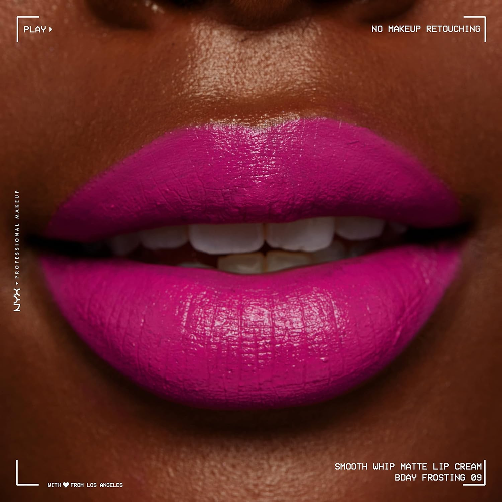 Smooth Whip Matte Lip Cream, Long Lasting, Moisturizing, Vegan Liquid Lipstick - Bday Frosting (Violet Red) Smooth Matte Lip Cream: Introducing our new ultra-sensorial lip smoothing obsession. For a real life smooth effect with lip smacking color payoff. Get ultra vibrant matte finish lip make up shades whipped with moisturizing shea and cocoa butters Say Goodbye to Texture and Lines: Get smooth and nourished lips with this long lasting vegan liquid lipstick. Designed with a scoop matte lipstick applicator that hugs your lips for the perfect application. Get textureless lip color in just one swipe Lip Products for the Perfect Pout: Doll your lips in creamy, long lasting perfection; Try our complete line of lip makeup including liquid lipstick, lip gloss, lip cream, lip liner and butter gloss Cruelty Free Cosmetics: We believe animals belong in our arms, not in a lab; All of our makeup is certified and acknowledged by PETA as a cruelty free brand; We don't test any of our products on animals Discover NYX Professional Makeup: Try all of our professional makeup products today from eyeshadow, eyeliner, and false lashes to liquid lipstick, lip gloss, primer, concealer, setting sprays and eyebrow makeup Introducing Smooth Whip Matte Lip Cream, never before seen vibrant lip smoothers. Giving all day smooth sensation while nourishing your lips for all day comfortable wear. Get your smooth on with 24 vibrant lip smacking smooth shades in a comfortable matte finish that deliver maximum color payoff in just one swipe. Say goodbye to texture and lines with Smooth Whip Matte Lip Cream, which gives a real life smoothing filter for your lips. You're going to want to whip it real good. Try all of our professional makeup and beauty products today, from eyeshadow, eyeliner, mascara and false lashes to lipstick, foundation, primer, blush, bronzer, brushes and more. Dimensions 0.67 inches x 0.67 inches x 3.39 inches. Weight: 0.32 oz Specifications Item model number 0800897131197 Color 09 Bday Frosting Item Form Liquid Product Dimensions 0.67 x 0.67 x 3.39 inches; 0.32 ounces Country of Origin Taiwan Skin Type All Finish Type Matte Size 0.13 Fl Oz (Pack of 1) Shipping: Shipped from the USA. Fast delivery within 2–3 days. Payment: PayPal, credit card, bank transfer. Returns: 30-day free return – we cover the shipping cost. Quality: Made in Europe/USA/China. No customs fees. VAT invoice on request. Feedback: You’ll automatically receive positive feedback after payment.