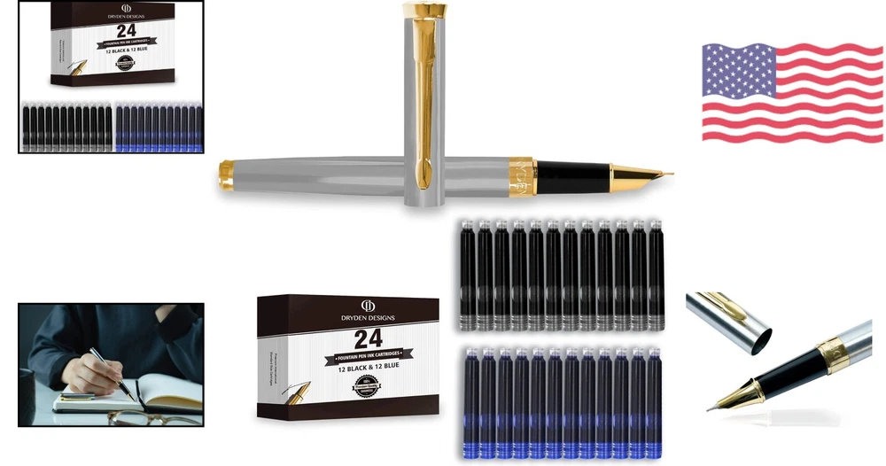 Smooth Writing Fountain Pen with Fine Nib - Includes 24 Ink Cartridges ‹ › ‹ › ‹ › ‹ › ‹ › ‹ › ‹ › ‹ › ‹ › ‹ › ‹ › Smooth Writing Fountain Pen with Fine Nib -Includes 24 Ink Cartridges Features: Slim, elegant design with perfect weight/comfort ratio for a relaxed and graceful writing experience. Ergocomfort technology for hours of uninterrupted writing without strain to your wrist or hand. Hooded, fine nib produces a 0.5 mm smooth and elegant line. No more skips or blotches. Beautiful slim design for a statement of sophistication. Designed to accommodate left-handed writers. 100% satisfaction guarantee - no-hassle refund if not delighted. Benefits: Relaxed and graceful writing experience Precision and sophistication in your writing No more skips or blotches Make a statement of sophistication Confidence to express your own style Refined writing experience Risk-free purchase with 100% satisfaction guarantee Exceptional customer service Why choose our Smooth Writing Fountain Pen? Experience the perfect balance of elegance and comfort with our Smooth Writing Fountain Pen. Designed with ergocomfort technology, this pen allows you to enjoy hours of uninterrupted writing without any strain to your wrist or hand. The hooded, fine nib produces a smooth and elegant line, ensuring precision and sophistication in your writing. No more skips or blotches to ruin your work. But it's not just about functionality - our fountain pen also boasts a beautiful slim design that exudes sophistication. Twist off the cap and let the world see your refined taste. As a family-run business, we prioritize our customers and guarantee 5-star service. If you're not 100% satisfied, we'll buy the pen back from you with no questions asked. Don't settle for ordinary pens - choose the Smooth Writing Fountain Pen for a truly exceptional writing experience. Order yours today! Shipping Free & Fast Shipping - We offer free shipping to most of the USA with a normal delivery time of 3-7 days. However, due to the current situation, additional delivery time (up to 3 weeks) may be required for some items. Alternative Carriers - We may use alternative carriers (e.g. USPS, FedEx, UPS, etc.) to ensure your package arrives safely and on time. Due to the use of multiple carriers, we are unable to provide a tracking number automatically. Handling Time - Orders are processed and shipped within 1-2 business days of receiving cleared payment. Shipping Restrictions - Shipping to Alaska, Hawaii, Puerto Rico, Guam, and other US territories may incur shipping charges or delivery restrictions. Please contact us before ordering, or your order can be refunded/cancelled. State Restrictions - There may be restrictions based on your state of purchase. For example, certain items may not be shipped to California due to state regulations. Contact for Tracking Updates - If you require tracking updates or have any concerns about the delivery of your order, please feel free to contact us, and we will be happy to assist you. Return 30-Day Hassle-Free Returns - We want you to be completely satisfied with your purchase. If you are not, you can return the item within 30 days of receiving it for a full refund or exchange. Easy Return Process - To start a return, simply contact us and we will provide you with a prepaid return shipping label and detailed instructions. Restocking Fee - There are no restocking fees for returns. However, the buyer is responsible for return shipping costs if the return is not due to a seller's error. Refund Processing Time - Refunds will be processed within 5 business days of receiving the returned item in its original condition. Payment We accept all major credit cards, PayPal, and Apple Pay for your convenience. Your payment information is secure and encrypted to ensure a safe and seamless transaction. Please complete your payment within 3 days of purchase to avoid any delays in shipping. Feedback Your feedback is extremely important to us. We strive to provide the best products and customer service possible. If you are satisfied with your purchase, please take a moment to leave us a positive review. If you have any concerns or issues with your order, please contact us before leaving negative feedback. We are committed to resolving any problems and ensuring your satisfaction. Contact Us If you have any questions or concerns, please feel free to reach out to our customer support team. You can contact us through the eBay messaging system. We are available Monday to Friday, 9:00 am to 5:00 pm EST, and we will do our best to respond to your inquiry within 24 hours. Thank you for supporting our small family business!