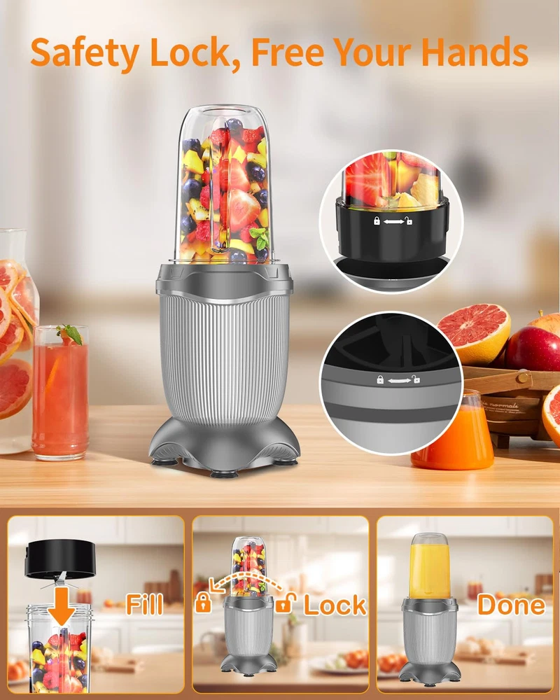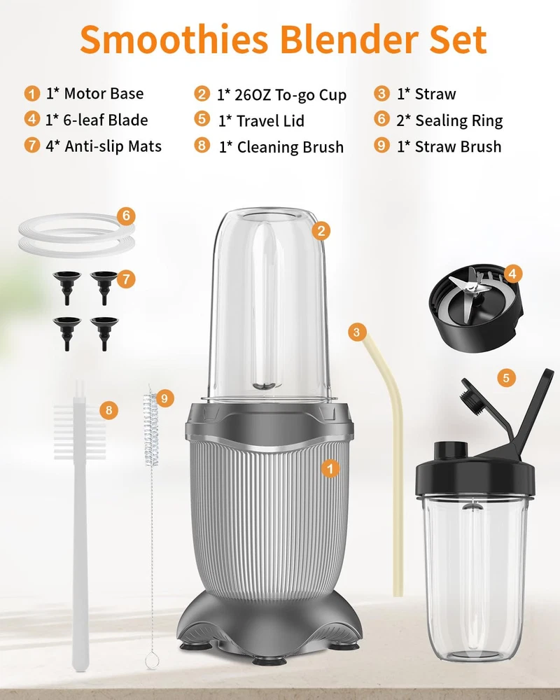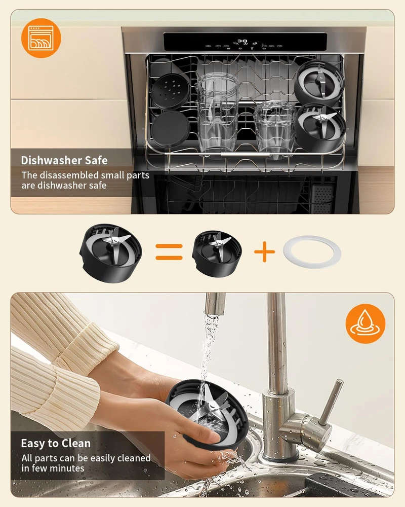 【Powerful Upgraded Smoothie Blender】850-peak-watt motor powers through the toughest ingredients and pulverizes ice to snow in seconds for creamy frozen drinks, smoothies, sauces, and more. Start experience exceptional blending power for smoothies and shakes, frozen drinks, sauces, and more. 【Efficiently Extract Nutrients】Upgraded 6-Leaf Stainless Steel Blade with High-Speed 25000 RPM, allow unlock hidden nutrition from whole fruits and veggies. Extract a drink containing vitamins and nutrients from fruits and vegetables. Achieve smooth and consistent results with the high-speed blending capability, allowing you to prepare your favorite drinks in seconds. 【Multifunctional Compact Blenders】Juice blender machine can mix, blend, grind, which meets your versatile needs. The 6-leaf blade can be used for smoothies, juices, shakes, baby food, ice cream, and protein drinks. The powerful string flat blades use cyclonic action to break down tough ingredients, and are also great for grinding like coffee beans, nuts, spices. 【Easy Operation & Clean】The upgraded blender is thoughtfully designed with a safety lock, which provides you with safety protection while freeing your hands. Powerful 25000 RPM pulse technology portable blenders efficiently extracts vitamins and nutrients from fruits and vegetables, enjoy the perfect healthy drink in just 10-20 S. You can just wash all the accessories (except the motor) with dishwasher or rinse them with running water. Simplify your blending experience, minimize cleanup time. 【Capacity Upgrade Trave Cups】Conveniently prepare and store your smoothies with the large 26oz blender cup. You can blend directly in the 26oz cup, mix well and enjoy directly or take away. Simplify your busy lifestyle, enjoy tasty & healthy homemade beverages everywhere. 【Perfect Gift for Any Occasion】This multifunctional blender is a great gift for your loved ones, parents, friends or colleagues on special occasions like Christmas, New Year, Birthdays, or Mother’s & Father’s Day.