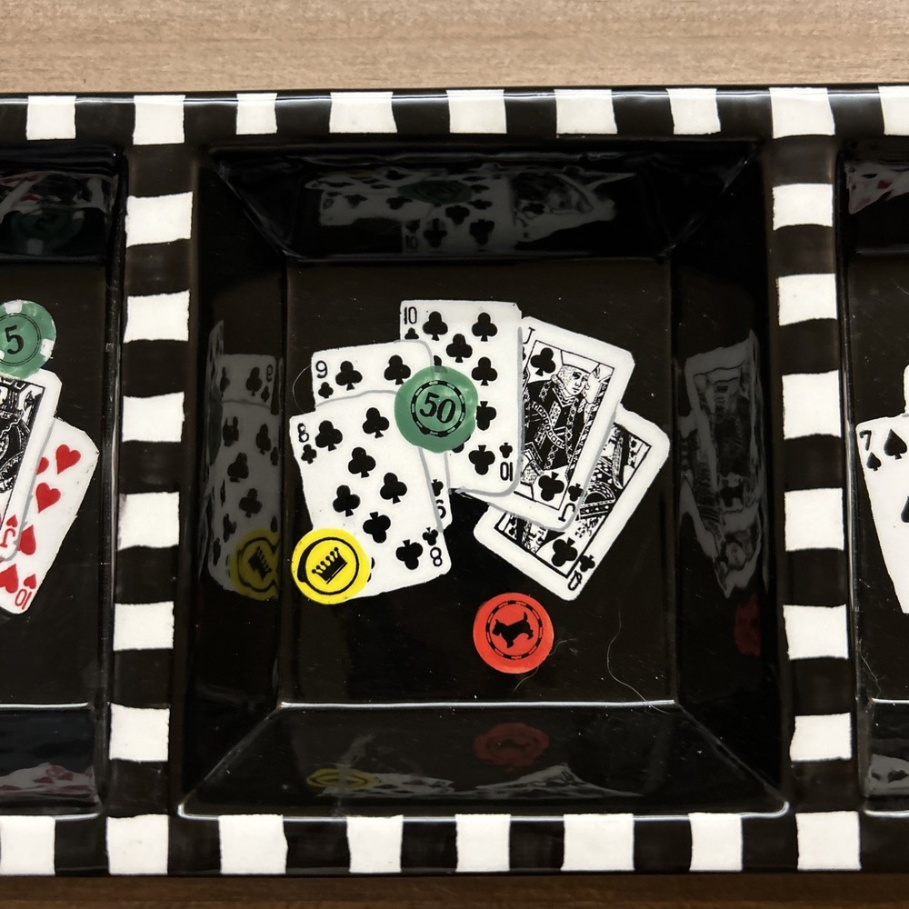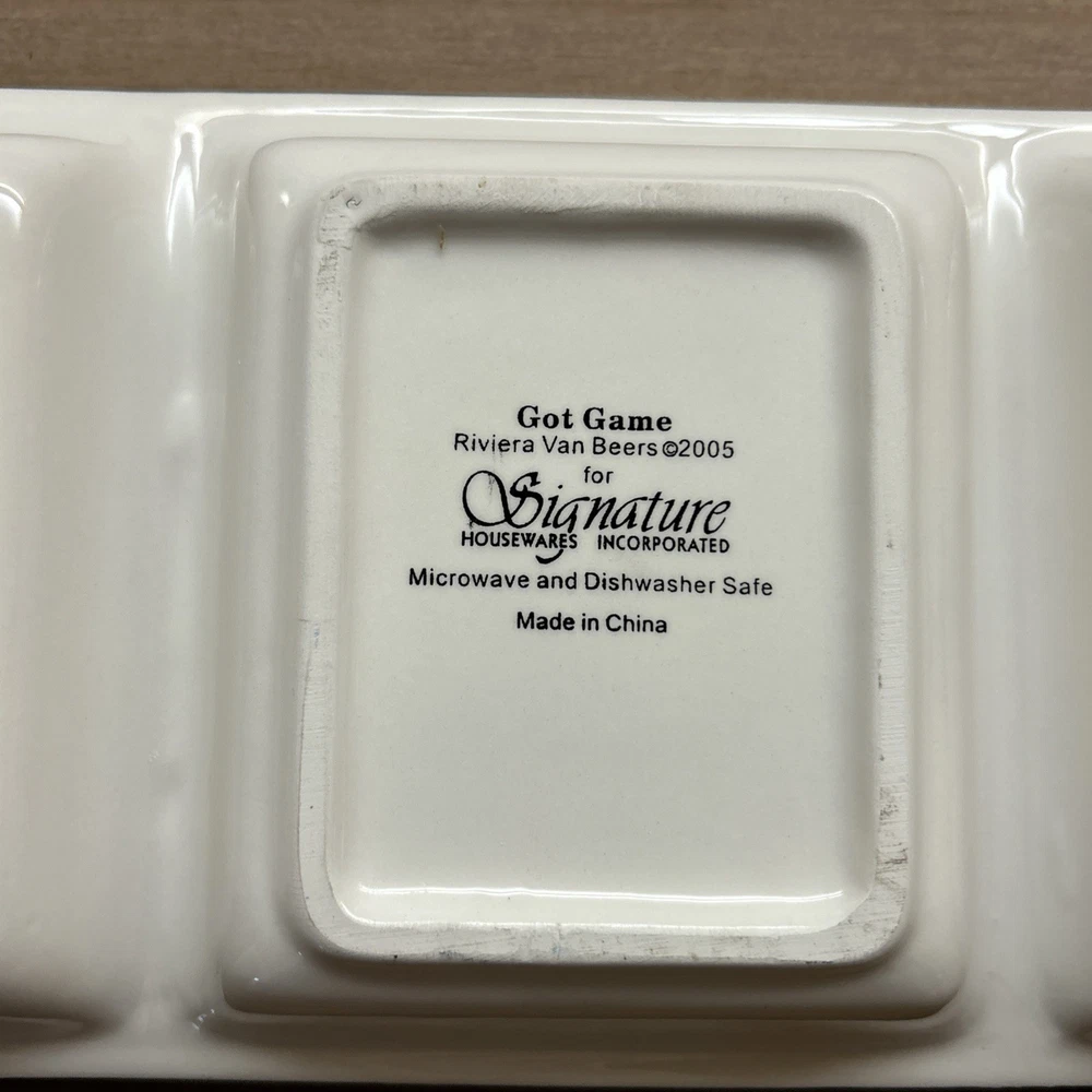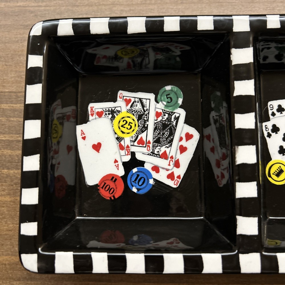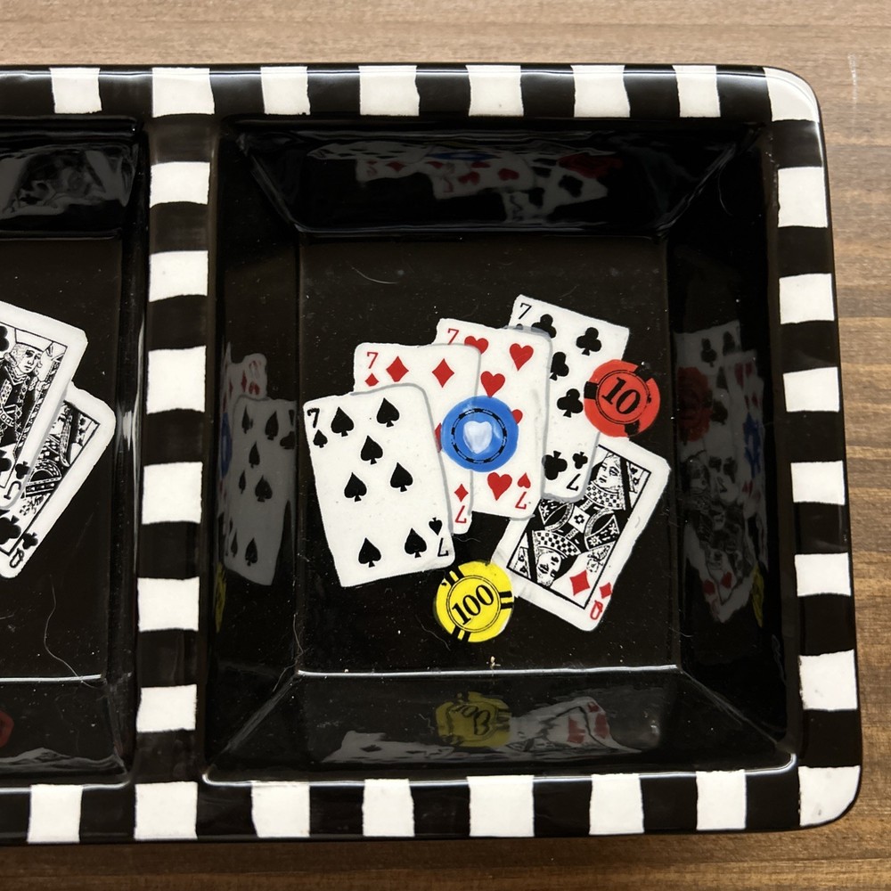 Pattern:Got Game / Poker HandBrand:Signature HousewaresMaterial:CeramicMPN:Does Not ApplyTheme:PokerFeatures:Dishwasher Safe, Microwave SafeCountry/Region of Manufacture:ChinaColor:BlackType:Serving Tray