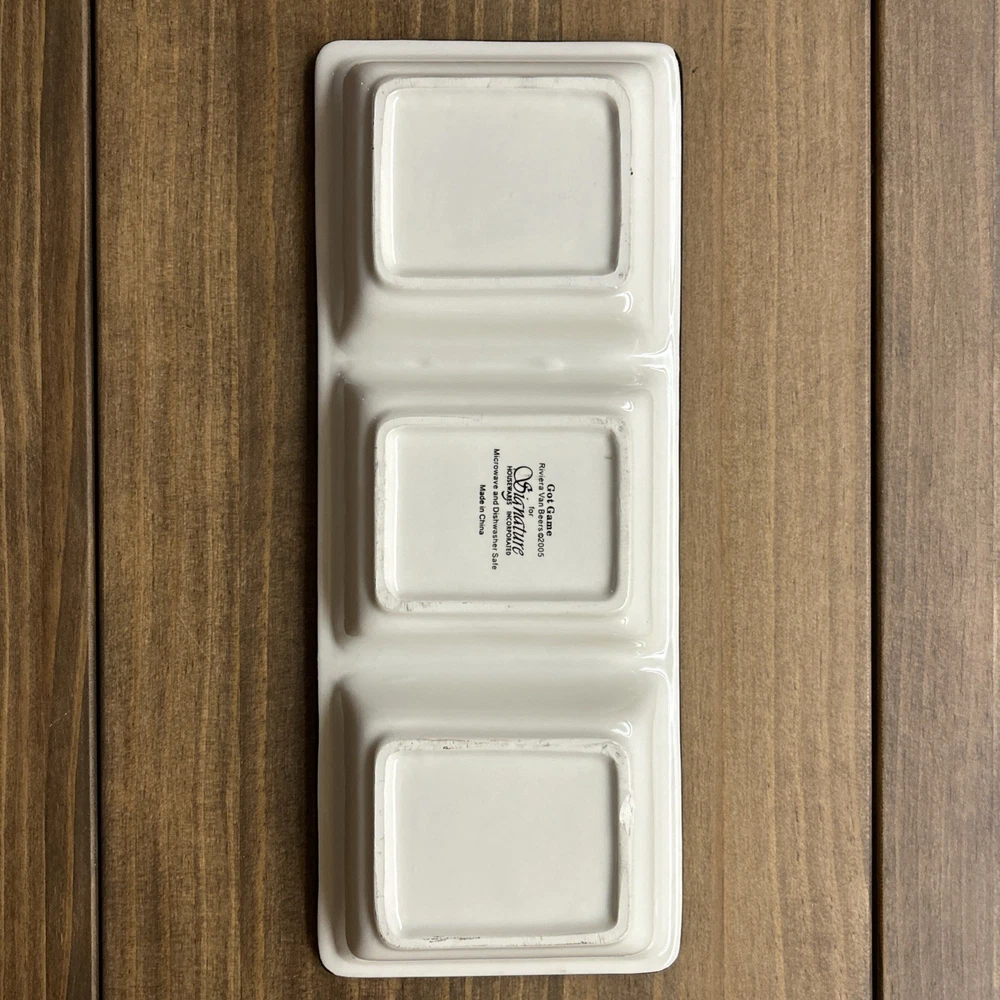 Stoneware Snack Tray with Divider Baum Bro Painted Fruit Design