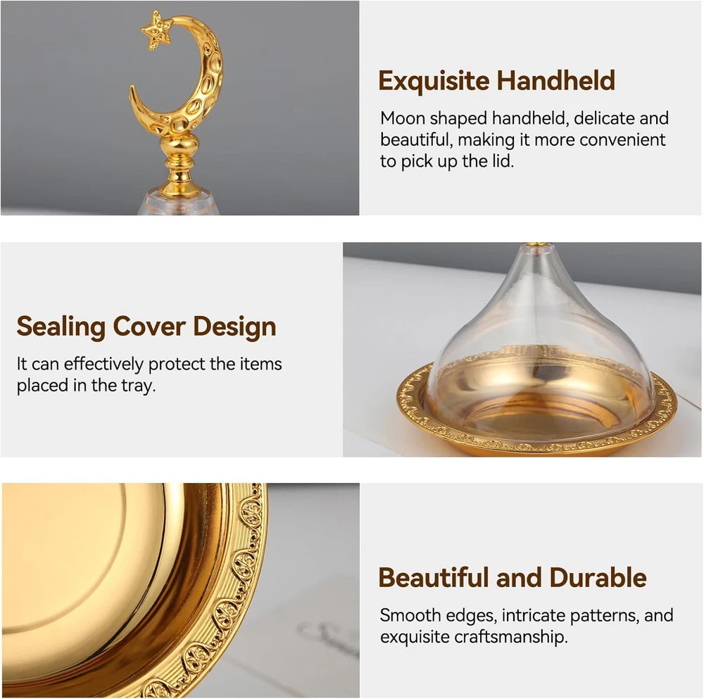 Store New Arrivals Add to Favorite View Feedback Contact Fast deliveries to the customer's home Quality customer service John Make the customers happy! Snack Serving Tray, Metal Ramadan Tray with Clear Dome Lid Mini Cake Candy Tray Reusable Dessert Tray round Food Storage Organizer for Nuts, Candies, Sweet Cookies Description 【ROMANTIC DESIGN】Comes with a transparent acrylic dome design lid, ramadan mubarak tray contains the typical Eid elements, snack serving tray looks gorgeous and beautiful, and ramadan decorations food tray has good decoration effect. 【WIDE APPLICATION】Small candy tray can be used to store and display cakes, desserts, sweets, biscuits, fruits or nuts, etc., ramadan tray for home is exquisite and practical, and dried fruit tray has wide applicable occasions. 【DURABLE MATERIAL】These trays are made of stainless steel material, sturdy and durable, with good strength and wear resistance, small decorative tray is not easy to break, snack tray can be used for very long time. 【EXQUISITE APPEARANCE】With exquisite workmanship, these golden serving trays are hollow out on the sides, and the exquisite patterns of ramadan serving tray are attractive. 【MULTIFUNCTIONAL】These metal trays are not only food containers, but also good table decorations, party embellishments or perfect gifts, appetizer tray is versatile. Product Description Features: ROMANTIC DESIGN: Comes with a transparent acrylic dome design lid, ramadan mubarak tray contains the typical Eid elements, ramadan decorations food tray has good decoration effect. EXQUISITE APPEARANCE: With exquisite workmanship, these golden serving trays are hollow out on the sides, and the exquisite patterns of ramadan serving tray are attractive. DURABLE MATERIAL: These trays are made of stainless steel material, sturdy and durable, with good strength and wear resistance, small decorative tray is not easy to break. WIDE APPLICATION: Small candy tray can be used to store and display cakes, desserts, sweets, biscuits, fruits or nuts, etc., ramadan tray for home is exquisite and practical. MULTIFUNCTIONAL: These metal trays are not only food containers, but also good table decorations, party embellishments or perfect gifts. Specification: Item Type: Serving Plate with Dome Product Material: Stainless Steel, Acrylic Product Use: Suitable for Salad Plate, Dessert Plate, Coffee Plate, Etc. Color: Golden Package List: 1 x Serving Plate with Dome 1 x Transparent Cover 1 x Top Statue Make your food look attractive and delicious with this plate that has a clear dome lid, to meet your decorative needs The metal base gives a rustic and elegant look, and the vintage touch will make any cooked food look classic Suitable for use as salad plates, dessert plates, coffee plates, etc., with a wide range of practicality Serving plate is made of stainless steel and acrylic material, which is wearable and durable, and can be used with confidence Serving dish is suitable as a seasonal gift for friends and family at Christmas, New Year, Thanksgiving, birthday parties, etc Style Traditional Special Feature Durable Number of Items 1 Color Golden Pattern Solid Material Stainless Steel, Acrylic Is Dishwasher Safe No Item Weight 10.9 ounces Is Oven Safe No Shape Round Recommended Uses For Product Food Tray Type Serving Tray Finish Type Polished Product Care Instructions Wipe with Dry Cloth Occasion Ramadan ABOUT US We offer the best prices around on high quality products. Our E-store includes media such as books, movies, music and games while offering electronics, toys, sporting apparel, clothing, tools, general home, garden items and more. SHIPPING We are always working hard to ensure your package arrives as soon as possible. Please understand that some factors like weather, high postal traffic, and the performance of shipping companies are outside of our control. We offer free shipping to the lower 48 states and ship within 2 business days of payment, usually sooner. We do not accept P.O. Boxes. Please provide a physical address. For shipping outside of the continental USA, we only use eBay's Global Shipping Program. The item is shipped to KY and then sent to the rest of the world. International customers are responsible for all duties and taxes. Continue to 'check out' to calculate costs for shipping the item to your country. Messages regarding eBay's Global Shipping Program MUST be directed at eBay EXCLUSIVELY. RETURNS We offer a 30-Day Return Policy on items in which you are not completely satisfied with. You have the option of a full-refund or an exchange of the item. No returns are available on items shipped outside of the USA PAYMENT We accept PayPal. CONTACT US This page content is yet to come Please ad us to your favorite seller and visit again later Thank You CUSTOMER SATISFACTION We try our very best to make sure every customer is completely satisfied. If there's a problem, message us! We're happy to help. WE ACCEPT