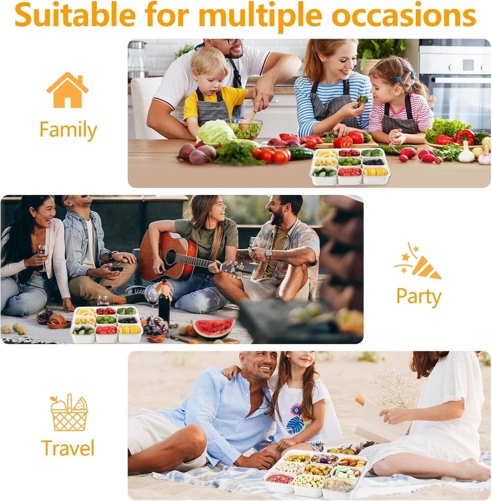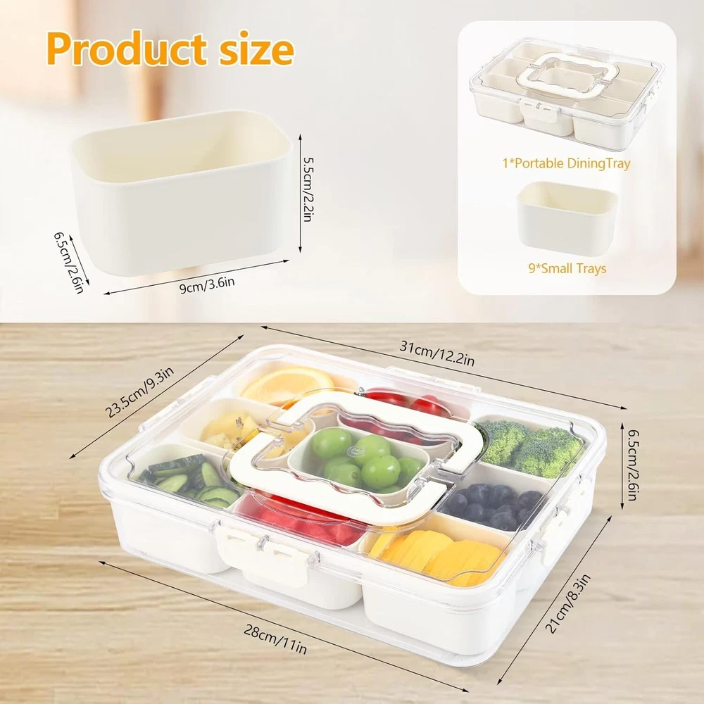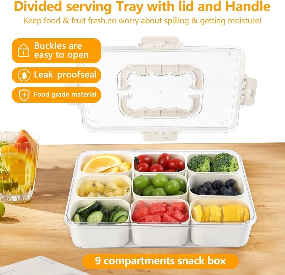 -Brand New - Never Used - Questions: Feel free to ask any Questions - BOX: Never Opened - DESCRIPTION: Convenient Portability: This snack box features a handle and 9 compartments, making it easy to store and carry different snacks, fruits, nuts, and candies for picnics, gatherings, travel, or beach trips. Removable Compartments: The 9 compartments can be detached individually for easy cleaning. The compartments are dishwasher-safe, while the transparent outer shell should be hand-washed. Premium Materials: Made from high-quality, food-grade plastic, this durable snack box features a professional latch design to ensure a tight seal between the lid and container. The airtight gasket extends food freshness. Clear Visibility: The transparent lid allows for easy monitoring of snack levels and remaining quantities. Usage Notes: Do not microwave or put the outer shell in the dishwasher. The container can withstand temperatures from -4°F to 140°F, suitable for refrigeration and room temperature storage. - OFFERS: Reasonable offers are considered, LOWBALLERS, Best price and Lowest askers will be ignored - all sales final/no refunds/ no exchanges/ no returns - Disclaimer: I do not own the brand's trademarks, logos, pictures, or products posted. I do not intend to infringe on copyright. I find such content available on the internet. Contents are considered fair use. - Divided Serving Tray with Lid & Handle - 9 Compartments Snackle Box Charcuterie Container for Snacks, Fruits, Nuts, Candy, Portable Clear Snack Platters for Picnic, Party,Travel, Beach