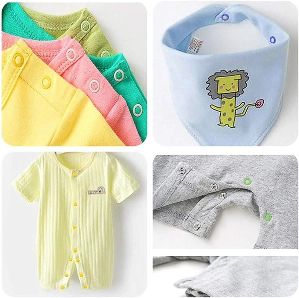 Snap Button Kit 100set, Snap Fasteners Kit with Pliers, Metal Snaps Kit with Tool, Five Claw Buckle Tool Set 10 Colors Hollow 100set 【Easy Storage】:Sewing snaps’ diameter approx is ". 10 colors, each color 10 colors: Silver, dark blue, pink, baby blue, orange, purple, baby pink, black, green, snaps button snaps are placed in a transparent storage box,you can quickly find different types of buttons to ensure that the colors of buttons are not confused, and you can easily find what you need. 【Premium Material】: Not like other plastic snaps which can be broken easily and color will fade after one or two ,long time exposure to sunlight will make plastic become deformed. Our snap fastener are made of top grade eco-friendly copper that is bright, tough, durable and anti rust. The snap fastener pliers are made with high-quality aluminum. Suitable for beginners or professional,The material is safe for infant skin. 【Easy To Use】: No need for hammer. No need to make hole first. Just follow our videos or read the installation instruction and you can make what you want. After you install the snaps on the cloth you want. The fabric snap will be won’t fall because the five sharp corner can make the snap steady, while other tools can’t do. Lightweight, easy to operate, portable. 【Widely Used】: This button repair kit enough for meet your different needs in DIY crafts, or making thin clothes. That can be applied for shirts, backpacks, hats, baby's jumpsuits, quilt covers, curtains, raincoats, pet clothes or other places you need. It's very sweet to make custom baby clothing by great kit for crafting or sewing projects. Use your ideas, make beautiful arts and crafts, as a good gift for people you care about. 【Attention】If you're not good at it or use it for the first time, we suggest that you can practice with a unwanted suitable for thick fabrics, such as cotton-padded jackets and coats. Only suitable for single clothes, underwear, one layer of cloth, double layer of cloth and so on. The Hollow prong eyelet must on the plier side without hole. Please keep this products away from people to prevent inadvertent swallowed. Colorful Snaps Buttons For Crafts