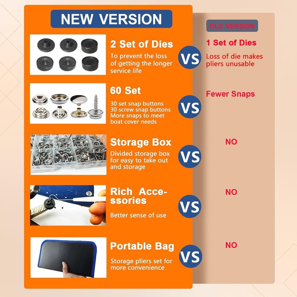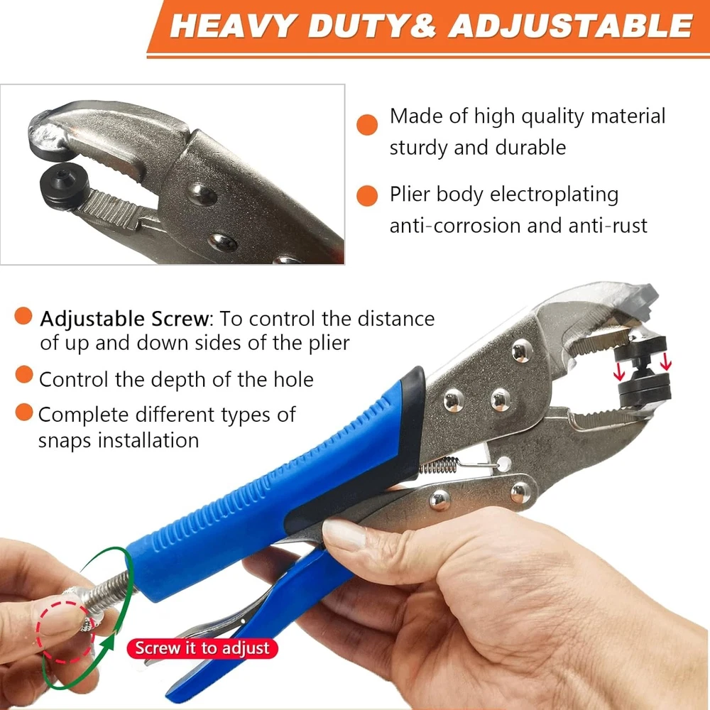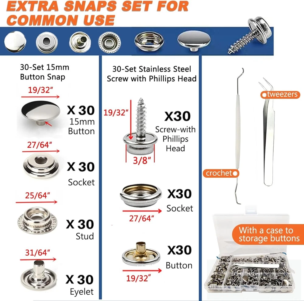 Snap Fastener Tool Set - Heavy-Duty 15mm Pliers & Snap Buttons Included ‹ › ‹ › ‹ › ‹ › ‹ › ‹ › ‹ › ‹ › ‹ › ‹ › ‹ › Snap Fastener Tool Set -Heavy-Duty 15mm Pliers & Snap Buttons Included Features: Upgrade Die Holder: Uses an innovative force of attraction to securely hold dies in place while snapping, making it ideal for a variety of applications including boat covers, tarps, canvas, leather, and carpets. Precise Welding: Highly calibrated, adjustable parts ensure that the jaws are accurately aligned for an effortless snap installation. Punching & Installation: Complete punching and installation process in one tool, resulting in tighter snaps that are less likely to fall off. Durable Design: The electroplated surface keeps the snap button tool rust-proof and enhances durability. Comprehensive Package: Includes a carrying bag, snap pliers for metal snaps, 3 dies, 30 set screw snap buttons, and 30 set 15mm snap buttons—all organized neatly in a storage box. Benefits: All-in-one kit designed for convenience and efficiency. No additional tools required for the complete process, saving you time. 60 sets of snap buttons included, perfect for daily use and diverse projects. Your satisfaction is prioritized, with dedicated 24-hour support for any queries. A "120-Day Money-Back" guarantee ensures your complete peace of mind. Why choose our Snap Fastener Tool Set? Unlock a world of efficiency and precision with our Snap Fastener Tool Set—your ultimate companion for effortless repair and installation tasks. Whether you're handling boat covers, camping gear, or bespoke canvas work, the upgraded die holder and precise engineering of our pliers will elevate your skillset and enhance your productivity. Don’t let difficult installations slow you down. Choose our Snap Fastener Tool Set today for a seamless, high-quality experience in fastener installation and enjoy the confidence of a reliable tool that meets all your needs! Shipping Free & Fast Shipping - We offer free shipping to most of the USA with a normal delivery time of 3-7 days. However, due to the current situation, additional delivery time (up to 3 weeks) may be required for some items. Alternative Carriers - We may use alternative carriers (e.g. USPS, FedEx, UPS, etc.) to ensure your package arrives safely and on time. Due to the use of multiple carriers, we are unable to provide a tracking number automatically. Handling Time - Orders are processed and shipped within 1-2 business days of receiving cleared payment. Shipping Restrictions - Shipping to Alaska, Hawaii, Puerto Rico, Guam, and other US territories may incur shipping charges or delivery restrictions. Please contact us before ordering, or your order can be refunded/cancelled. State Restrictions - There may be restrictions based on your state of purchase. For example, certain items may not be shipped to California due to state regulations. Contact for Tracking Updates - If you require tracking updates or have any concerns about the delivery of your order, please feel free to contact us, and we will be happy to assist you. Return 30-Day Hassle-Free Returns - We want you to be completely satisfied with your purchase. If you are not, you can return the item within 30 days of receiving it for a full refund or exchange. Easy Return Process - To start a return, simply contact us and we will provide you with a prepaid return shipping label and detailed instructions. Restocking Fee - There are no restocking fees for returns. However, the buyer is responsible for return shipping costs if the return is not due to a seller's error. Refund Processing Time - Refunds will be processed within 5 business days of receiving the returned item in its original condition. Payment We accept all major credit cards, PayPal, and Apple Pay for your convenience. Your payment information is secure and encrypted to ensure a safe and seamless transaction. Please complete your payment within 3 days of purchase to avoid any delays in shipping. Feedback Your feedback is extremely important to us. We strive to provide the best products and customer service possible. If you are satisfied with your purchase, please take a moment to leave us a positive review. If you have any concerns or issues with your order, please contact us before leaving negative feedback. We are committed to resolving any problems and ensuring your satisfaction. Contact Us If you have any questions or concerns, please feel free to reach out to our customer support team. You can contact us through the eBay messaging system. We are available Monday to Friday, 9:00 am to 5:00 pm EST, and we will do our best to respond to your inquiry within 24 hours. Thank you for supporting our small family business! UPC: Not Set MPN: Snap_Fasteners_Kit Unit Quantity: 2.29 Suitable For: Costumes,Upholstery,Boat Cover,Canvas,Carpet,Heavy Fabric,Tarp,Bimini Tops Color: Blue Material: Metal Type: Snap Button Brand: Unbranded Shape: Round Unit of Sale: Pack Country/Region of Manufacture: Not Set Unit Type: lb