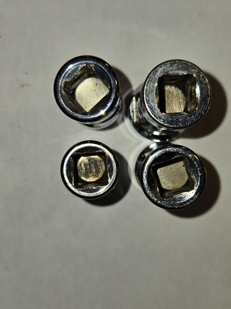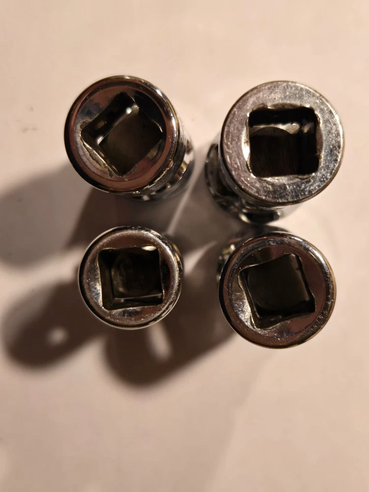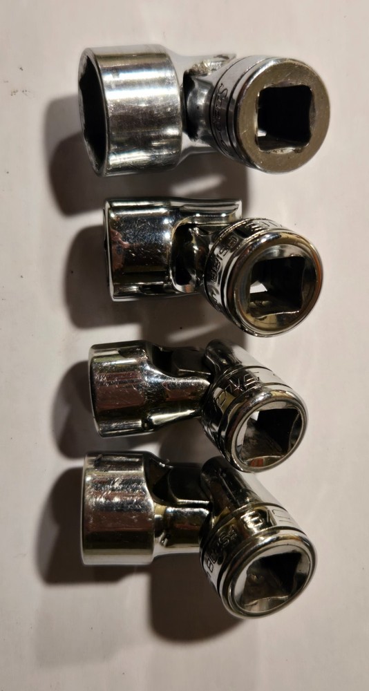 Snap On 3/8" Drive 6 Point SAE Flank Drive Shallow Universal Socket Set of 4 pcs FS18B - 9/16" FS22- 11/16" FS20B - 5/8" FS16B - 1/2" Nice Condition, minor scratches from normal use See Photos