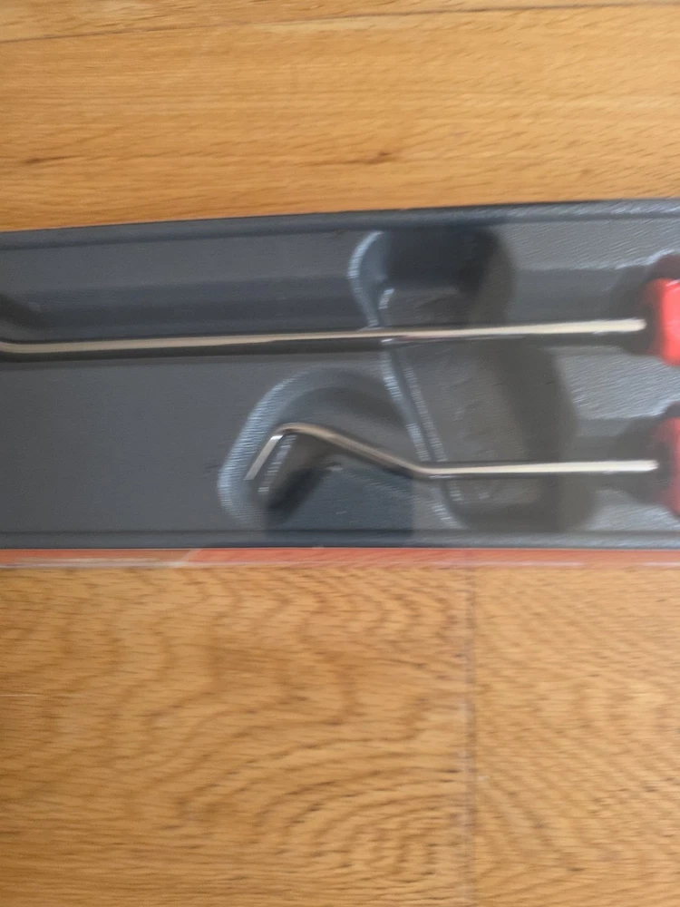 The Snap-on SGRHT2BO Soft Grip Radiator Hose Pick Set consists of 2 pieces in an eye-catching orange color. This durable set is manufactured in the United States and features a soft grip handle for comfortable use. The tools are designed for efficiently removing and installing radiator hoses in vehicles, making them a valuable addition to any mechanic's toolbox.