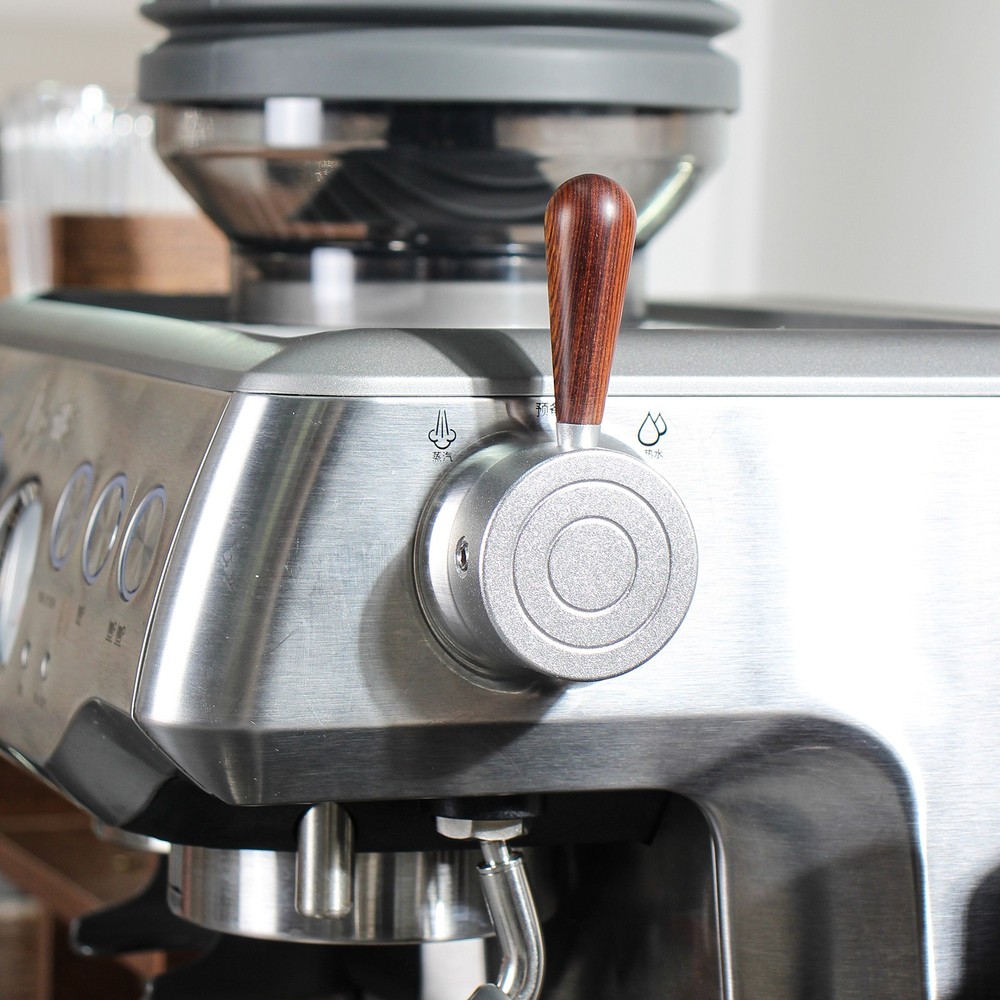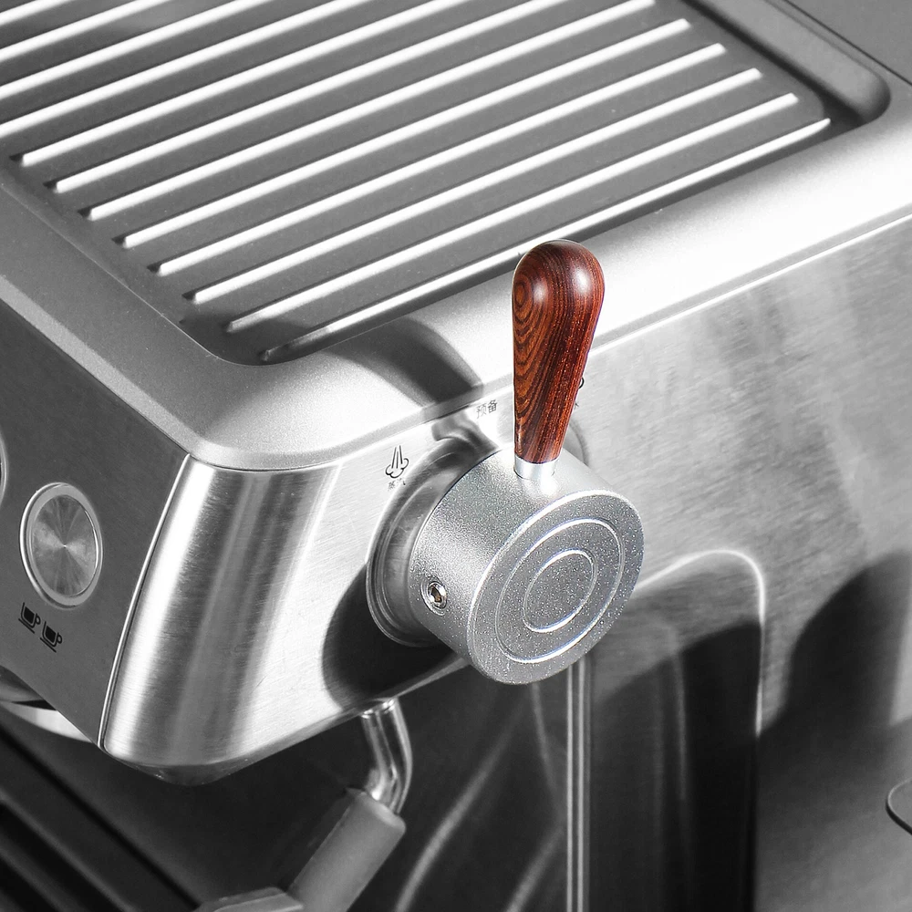 Snap-On Coffee Machine Steam Lever For Breville Barista Pro/Express/Impress Descriptions: The steam lever is designed to easily attach to the existing switch, upgrade the small, hard-to-turn stock steam knob on your expresso machine. With this lever, it'll be easier control of steam flowing, facilitating froth and temperature adjustments that ultimately enhance the taste and quality of your coffee. Crafted from premium aluminum alloy, this coffee maker accessory offers exceptional durability and stability, guaranteeing long-lasting performance. Snap-on design, no need to remove the steam knob or disassembly the machine. Two-way Easy installation: Simply snap it onto the existing steam switch, press firmly, and tighten the handle and the support screw. Note: The lever's secured onto the steam knob by setscrews, which may cause slight damages to the stock plastic steam knob. Specifications: Type: Snap-On Steam Lever Condition: Brand New Material: Aluminum Color: Silver Lever Length: 50mm/1.96in Weight: 55g Fitment: For Breville Barista Pro (BES878) For Breville Barista Express (BES870) For Breville Barista Express Impress (BES876) *May also fit for other models, please check the picture for dimensions of the slot and compare to your stock steam knob. Package Includes: 1 Piece Instructions NOT included.