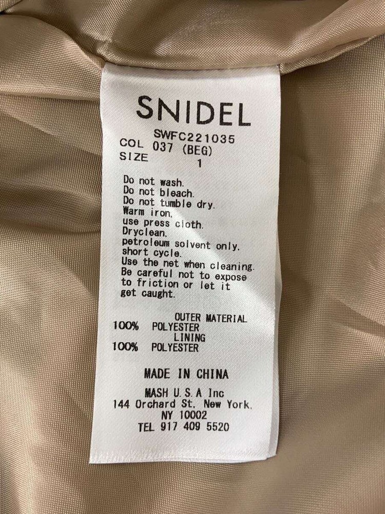 Item Title Snidel Trench Coat/1/Polyester/Ivo/Plain/Swfc221035 3944 Payment Supports managed payments Please pay within 5 days after auction is finished. About Us We are located in Japan. It's our pleasure to make you happy by proposing our recommend item. If you have any questions or request about items, please feel free to ask us. International Buyers - Please Note: -Import duties, taxes, and charges are not included in the item price or shipping charges. These charges are the buyer's responsibility. -Please check with your country's customs office to determine what these additional costs will be prior to bidding/buying. -These charges are normally collected by the delivering freight (shipping) company or when you pick the item up - do not confuse them for additional shipping charges. -We do not mark merchandise values below value or mark items as - gifts - The US and International government regulations prohibit such behavior. Thank you for your understanding.