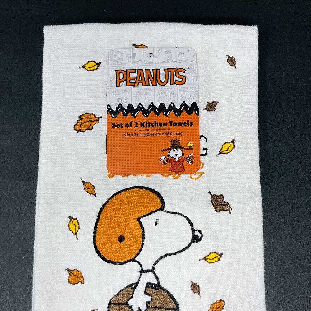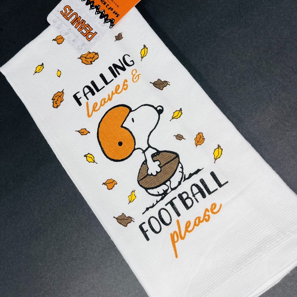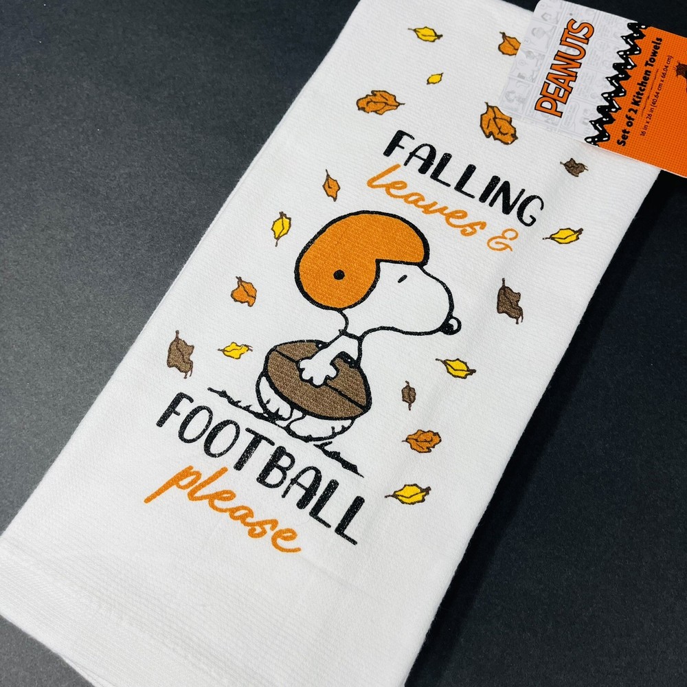 Snoopy 2-Pack Kitchen Towels Falling Leaves Football Design New