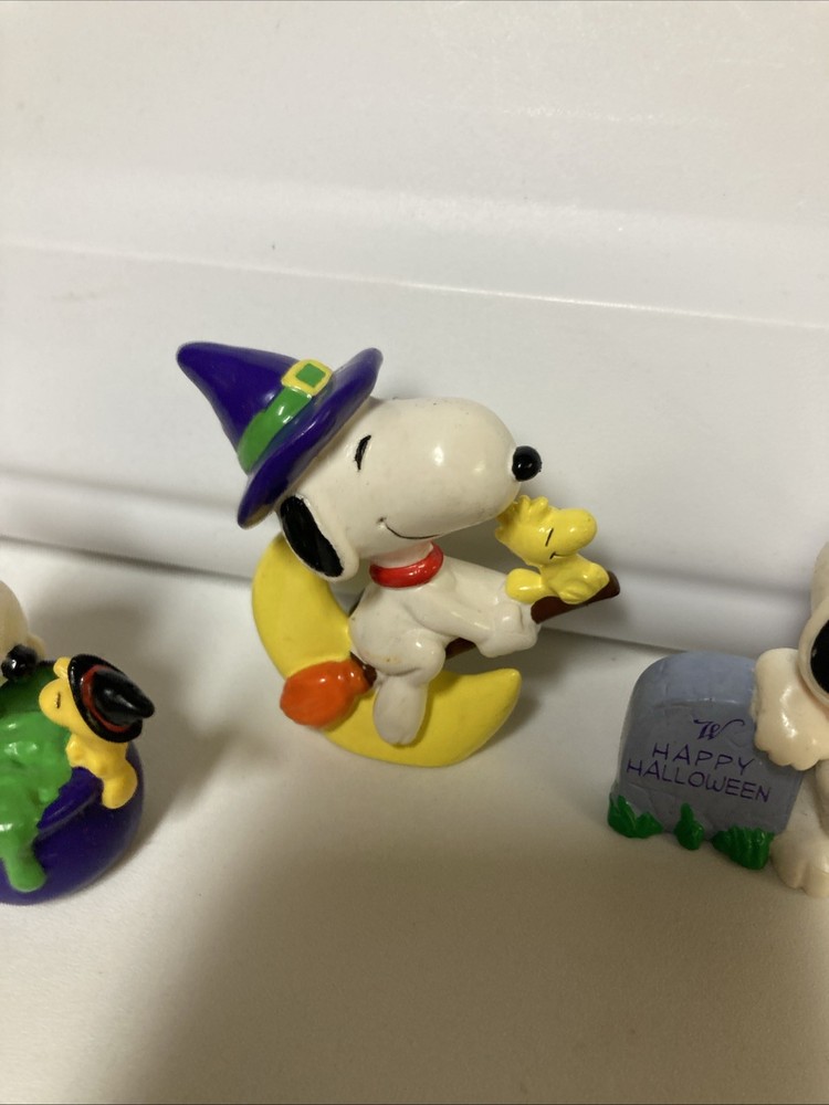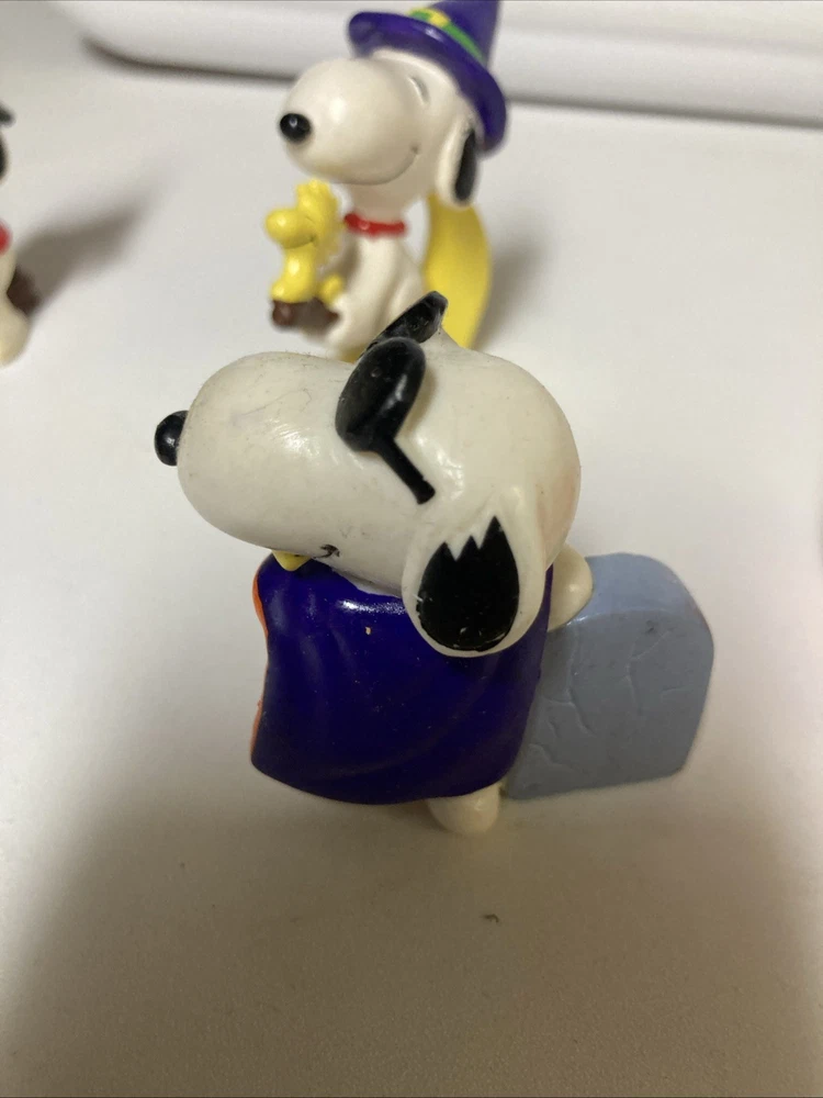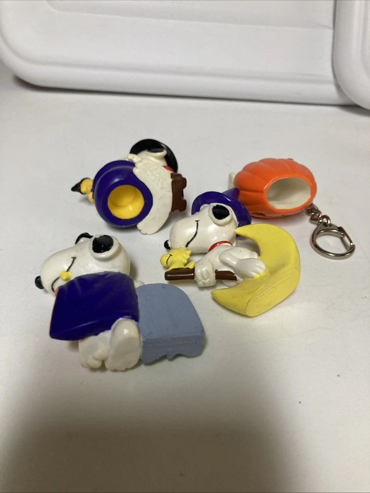 You will receive all four peanuts Snoopy and Woodstock PVC mini figurines. They’re only about 2“ x 2“ colors are good and they’re very good condition. Believe these are from the late 70s. Would be really great for any peanuts Snoopy or Woodstock collector. Love the Halloween theme as well. Also check out our Garfield PVC figurine lot. Fast and secure shipping. Thanks and good luck.