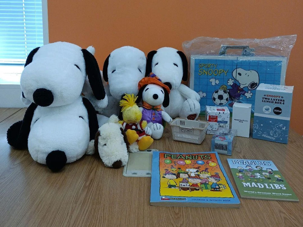 Snoopy Figure Lot of set Lunch box Glass Key McDonald's Tote bag Coloring book