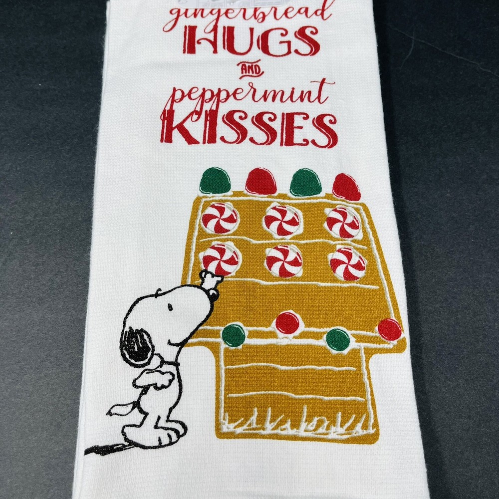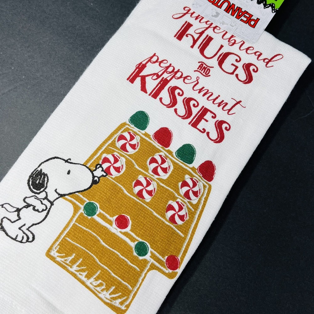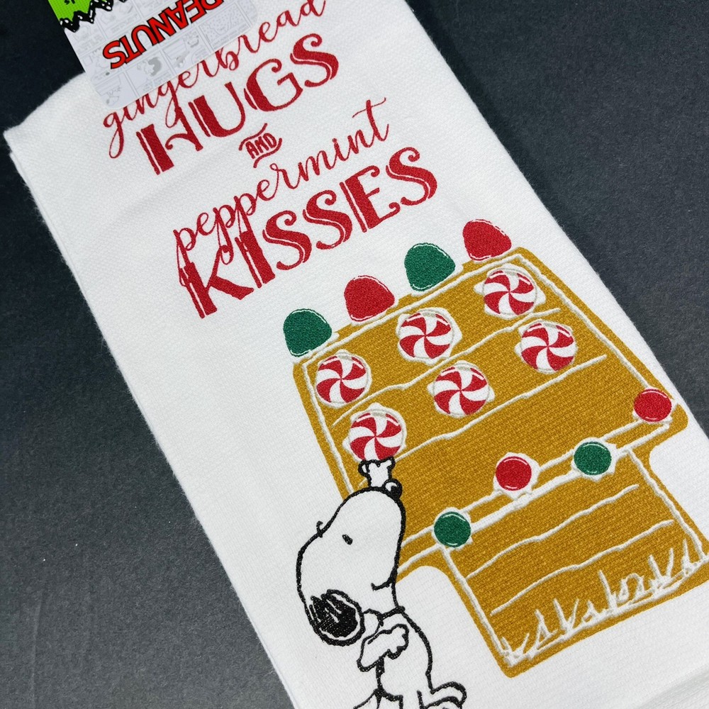 PEANUTS 2 Pack Hand Kitchen Towels Christmas Snoopy Gingerbread Peppermint XO