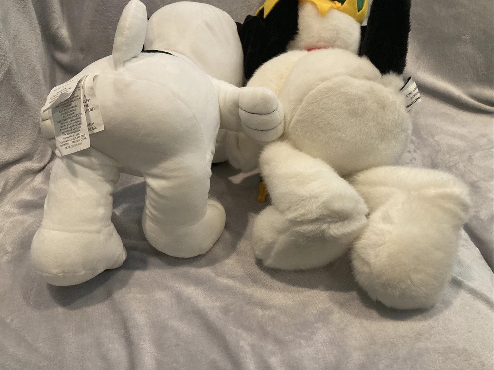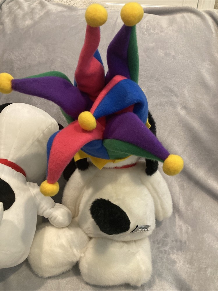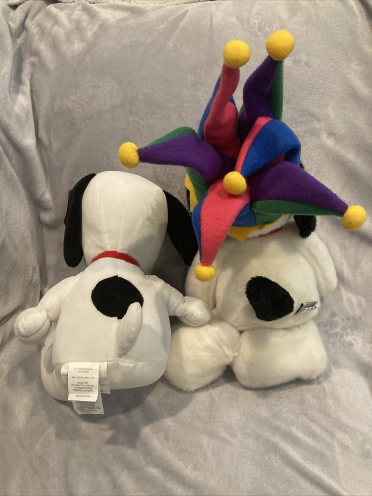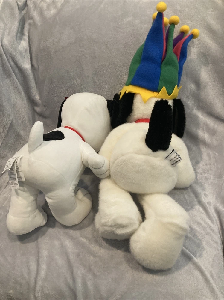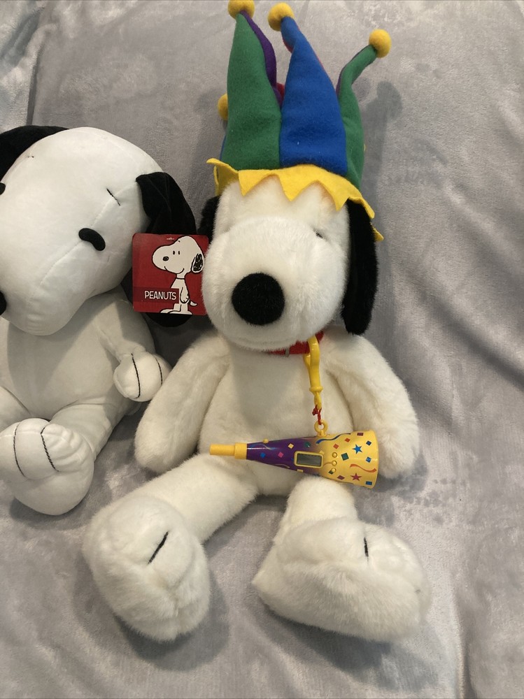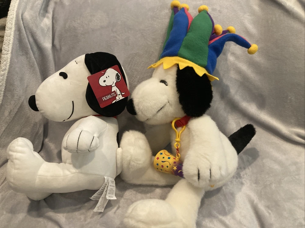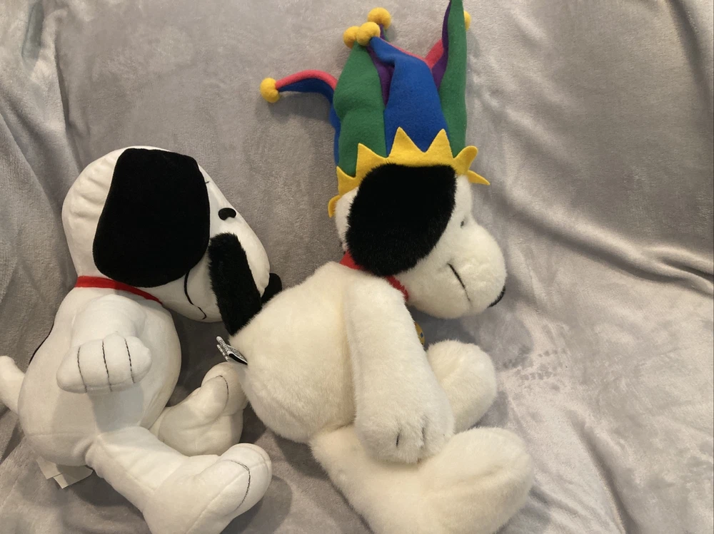 1 Macys 2000 new years Millennium snoopy jester plush(no tag) 1 Harry Potter wizarding world store brand snoopy plush w/tag (see photo) Both are near new with some light display wear.