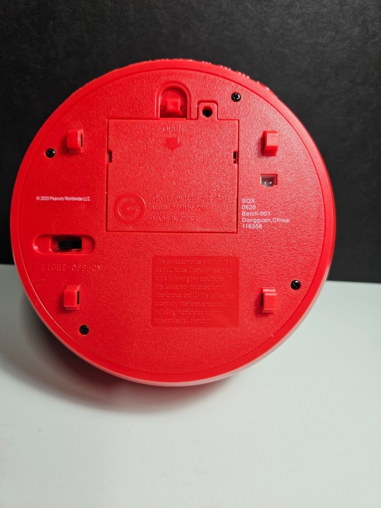 Snoopy Peanuts LED Light Show Projection Shadow Light Christmas Indoor Red Good condition. Works fine. Requires 3AA Batteries. 3 modes. Off, Stationary on. Mobile on. I'm not sure how well it would work outside, but this was meant to be on inside the home.