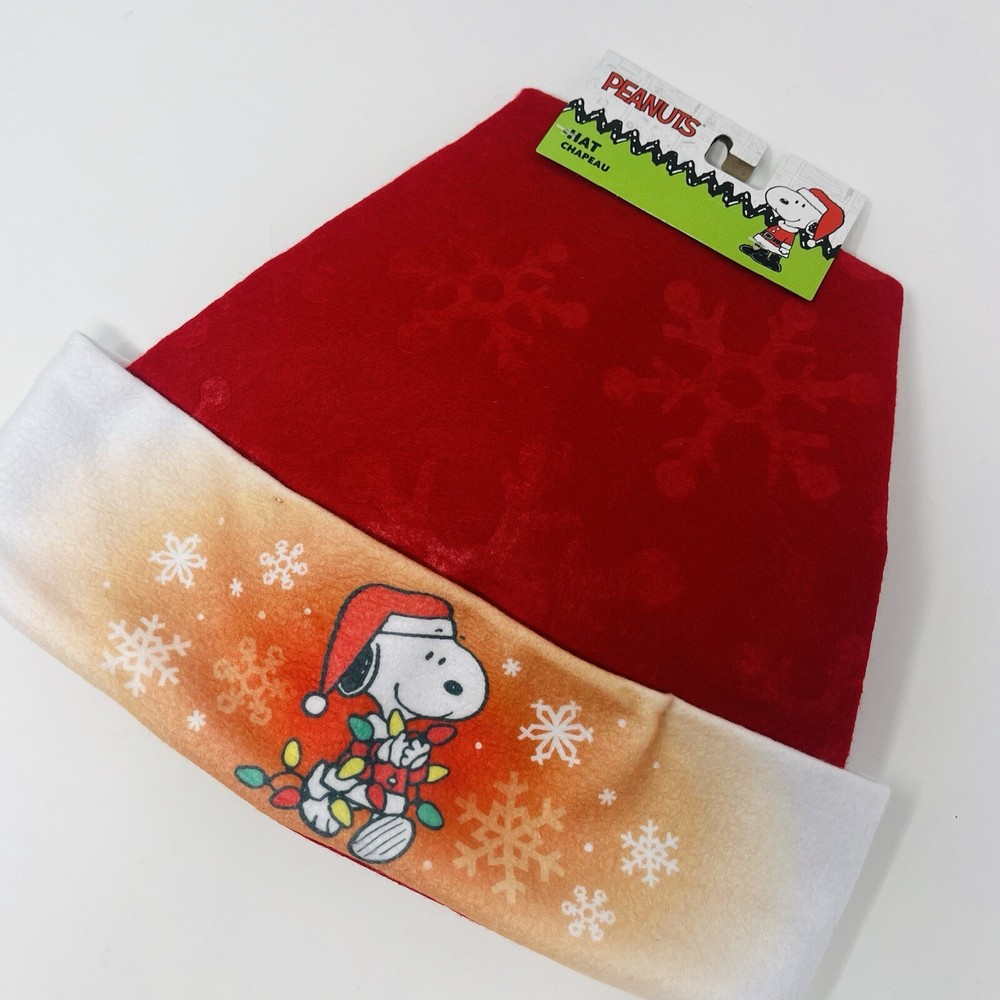 PEANUTS Snoopy Red Santa Hat Cap Pom Snowflake Imprint 15x12” Tangled Lights NEW