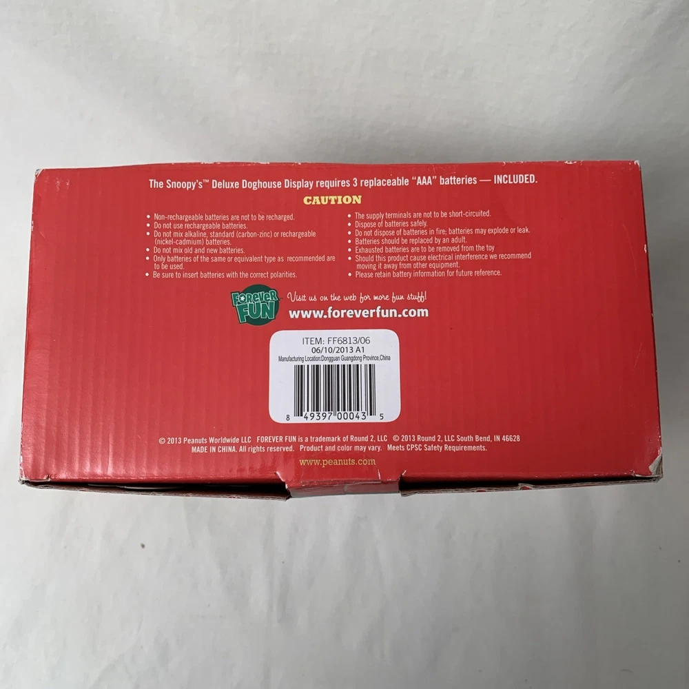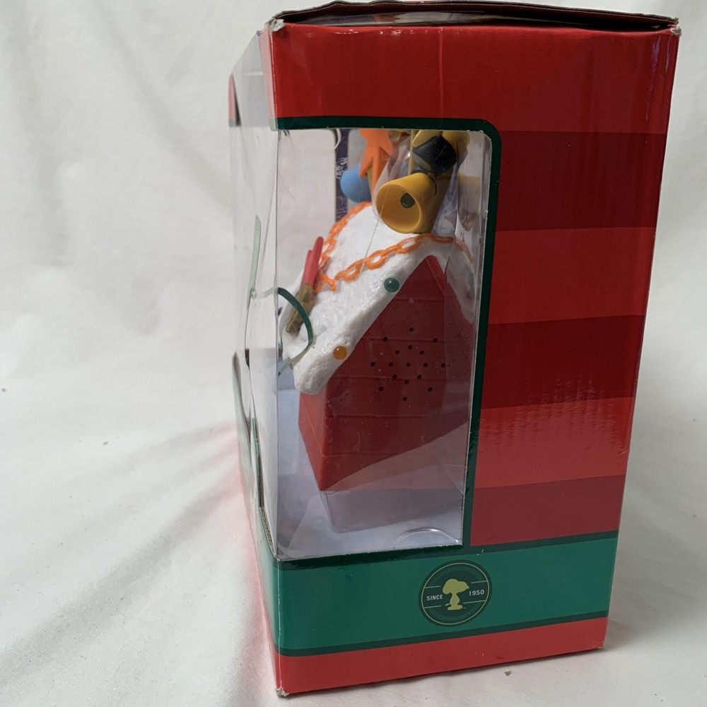 New in box Snoopy’s Doghouse display with lights and sound. Lights and sound not working (assumed dead battery). See photos for condition. Sold as is.