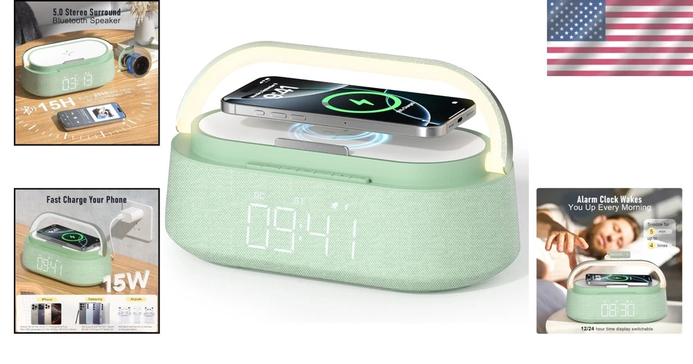 Snooze Alarm Clock with Bluetooth Speaker, Wireless Charger & Touch Night Light ‹ › ‹ › ‹ › ‹ › ‹ › ‹ › ‹ › ‹ › ‹ › ‹ › Snooze Alarm Clock with Bluetooth Speaker Wireless Charger & Touch Night Light 6-in-1 Multifunctional Design Smart Alarm Clock: Blends a Bluetooth speaker, wireless charger, FM radio, digital alarm clock, adjustable night light, and phone stand into one sleek device. Fast & Safe Wireless Charging 15W Fast Charging: Equipped with intelligent charging protocol to provide quick and safe wireless charging for compatible devices. Supports iPhone models including 16/15/14/13/12/11/X/8 and AirPods. Compatible with Samsung Galaxy S21/S22/S23 series with 10W charging capability. Efficient Wake-Up Features Smart Alarm: Reliable alarm functionality with a 5-minute snooze mode that can be activated up to four times. Designed to ensure you wake up refreshed and on time. Exceptional Bluetooth Sound Quality Advanced Audio: Features Bluetooth 5.0 technology for stable connections up to 33 feet. Dual speaker design delivers clear sound quality and rich bass for a seamless music experience. Warm Night Light Function Adjustable Brightness: Touch-sensitive night light with three brightness levels (30%/70%/100%). Creates a soothing atmosphere perfect for reading, relaxation, or coaxing children to sleep. Perfect Gift & Home Decor Exquisite Design: Crafted from high-quality materials, this multifunctional clock is a stylish addition to any room. An ideal gift for special occasions: Christmas, Valentine's Day, Mother's Day, Father's Day, or birthdays. Why Choose Our Snooze Alarm Clock? Elevate your mornings with the perfect blend of practicality and elegance. This multifunctional alarm clock not only awakens you gently but also enriches your day with exceptional sound quality and the convenience of a fast charger. Its soft night light and exquisite design make it more than just a clock; it's a beautiful centerpiece for your home. Treat yourself or a loved one to this perfect blend of style and functionality—transform your waking experience today! Shipping Free & Fast Shipping - We offer free shipping to most of the USA with a normal delivery time of 3-7 days. However, due to the current situation, additional delivery time (up to 3 weeks) may be required for some items. Alternative Carriers - We may use alternative carriers (e.g. USPS, FedEx, UPS, etc.) to ensure your package arrives safely and on time. Due to the use of multiple carriers, we are unable to provide a tracking number automatically. Handling Time - Orders are processed and shipped within 1-2 business days of receiving cleared payment. Shipping Restrictions - Shipping to Alaska, Hawaii, Puerto Rico, Guam, and other US territories may incur shipping charges or delivery restrictions. Please contact us before ordering, or your order can be refunded/cancelled. State Restrictions - There may be restrictions based on your state of purchase. For example, certain items may not be shipped to California due to state regulations. Contact for Tracking Updates - If you require tracking updates or have any concerns about the delivery of your order, please feel free to contact us, and we will be happy to assist you. Return Please see our eBay Return Policy. Thank you. Payment We accept all major credit cards, PayPal, and Apple Pay for your convenience. Your payment information is secure and encrypted to ensure a safe and seamless transaction. Please complete your payment within 3 days of purchase to avoid any delays in shipping. Feedback Your feedback is extremely important to us. We strive to provide the best products and customer service possible. If you are satisfied with your purchase, please take a moment to leave us a positive review. If you have any concerns or issues with your order, please contact us before leaving negative feedback. We are committed to resolving any problems and ensuring your satisfaction. Contact Us If you have any questions or concerns, please feel free to reach out to our customer support team. You can contact us through the eBay messaging system. We are available Monday to Friday, 9:00 am to 5:00 pm EST, and we will do our best to respond to your inquiry within 24 hours. Thank you for supporting our small family business! UPC: Not Set Unit Quantity: 2.31 pounds Charging Power Range: 15W Item Height: Bluetooth Speaker with Charger Item Length: Bluetooth Speaker with Charger Item Width: Not Set Connectivity: Bluetooth Features: Bluetooth,Charger Included,Touch Control,Snooze,FM Radio,Temperature Control,Fast Wireless Charging,Touch LED Night Light,Alarm Clock with Snooze,Portable Wireless Speaker Color: Green Audio Inputs: None Compatible Brand: Not Set Compatible Model: Universal Smart Home Compatibility: None Surround Sound Formats: None Brand: Unbranded Model: Bluetooth Speaker with Charger Type: Bluetooth Speaker RMS Power: 15 W System Configuration: Mono MPN: Not Set Unit Type: lb Year Manufactured: Not Set Shape: Rectangular Material: Abs Country/Region of Manufacture: Not Set Plug Regional Fitment: Not Set Battery Capacity: None Manufacturer Warranty: Not Set Item Weight: 2.31 pounds