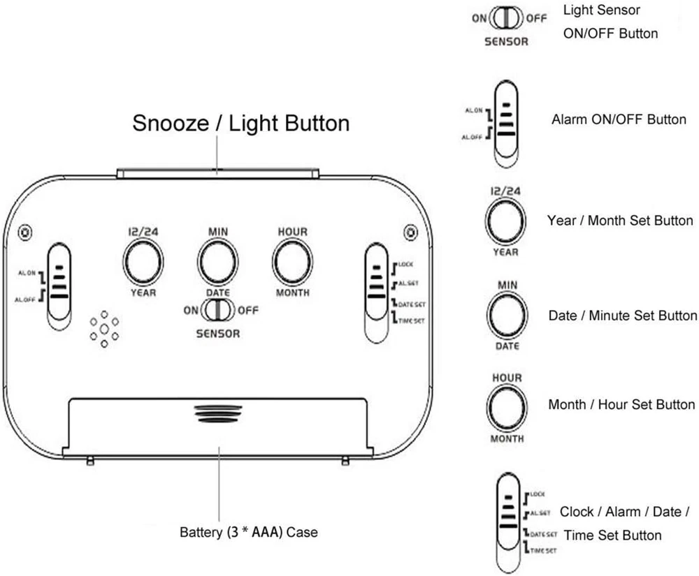 Brand: Unbranded Special Feature: Auto, Large Display, Snooze, Alarm Theme: Calendar Age Range (Description): Adult Room Type: Home Office Features: Alarm Shape: Rectangular Color: Clock-green gtin13: Does not apply Power Source: Corded Electric, Battery Powered UPC: Does not apply Display Type: Digital Style: English Country/Region of Manufacture: United States Type: Does not apply Product Dimensions: 1"W x 1"H