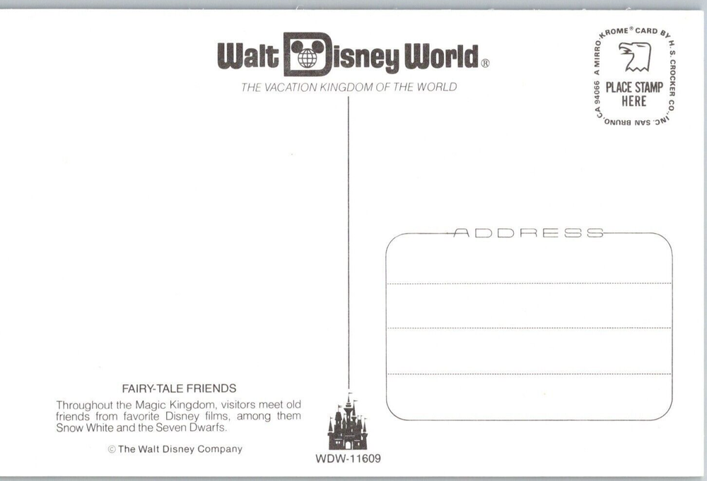 Snow White and the Seven Dwarfs Vintage Disney Magic Kingdom Postcard