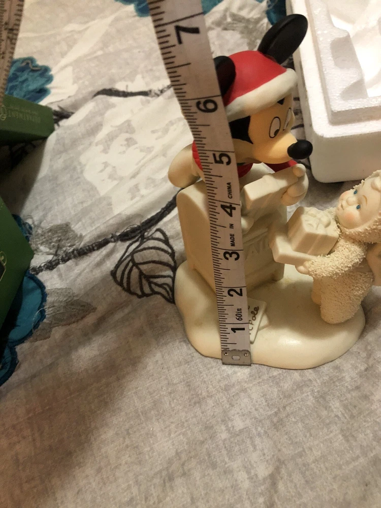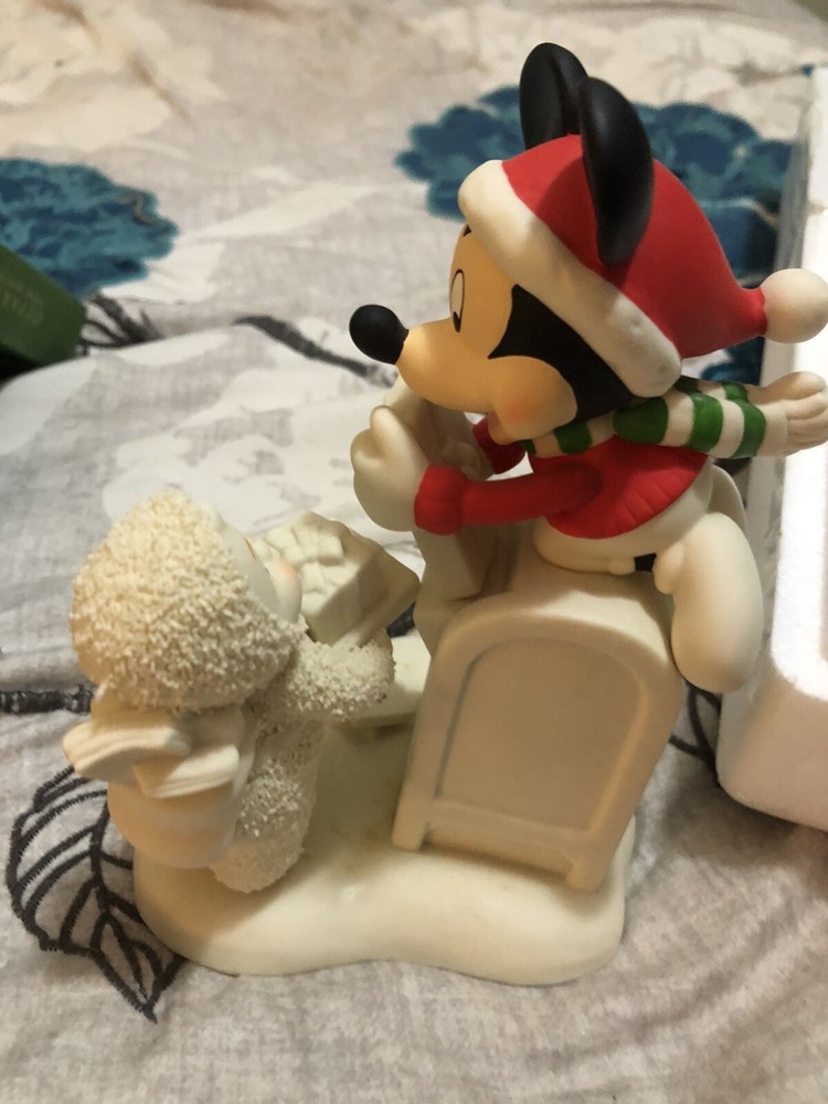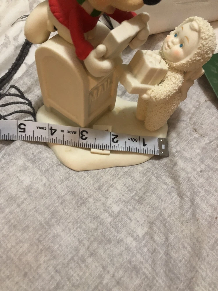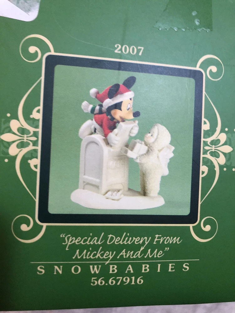 This Snowbabies figurine is a special delivery from Mucky and Me, perfect for your Christmas decorations. Made of resin with a matte finish, it features a colorful design and measures 5.25 inches in length. This collectible item is an original from the Department 56 brand and is part of the Snowbabies collection. It's a great addition to any figurine collection, especially for fans of cartoon and TV characters. This figurine is an adult size and was manufactured in China in 2007. With only 1200 of these made, this is a rare find and a must-have for any Disney collector.