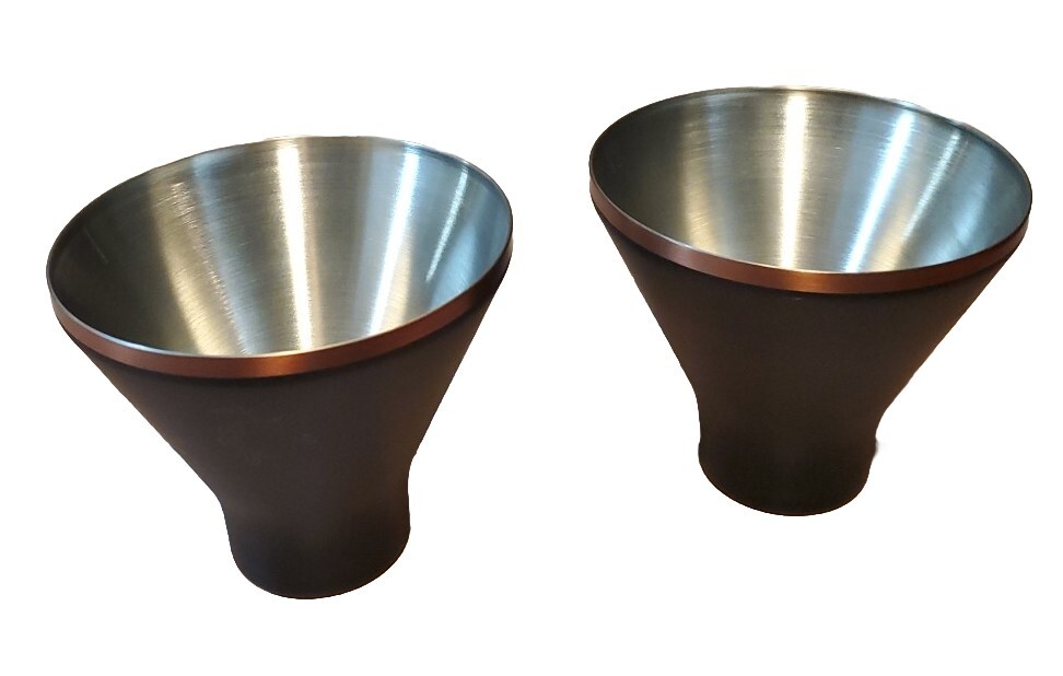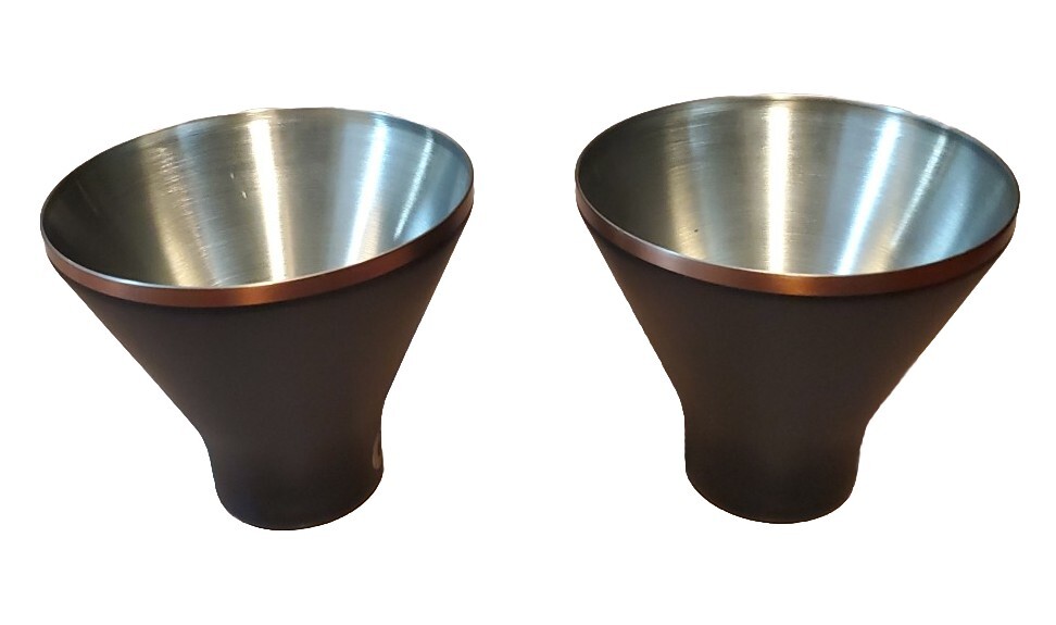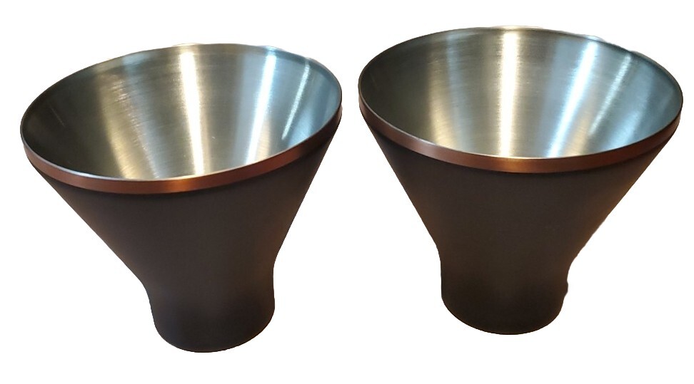 Elevate your cocktail parties with this Snowfox two-piece martini glass set. The round, geometric shape with black copper trim and solid color pattern adds a modern touch to all occasions. Made of stainless steel, these glasses have a capacity of 8 oz and a height of 3 7/8 inches. The Snowfox martini glasses are not only stylish but also functional with features like break/chip resistance, condensation-free, food safe, and vacuum-sealed insulation. Hand wash only and perfect for personal use or as a gift for adults, this set includes two glasses and is ideal for a cocktail party. Very nice pre owned condition. Light sticker residue. 00g5w9x8z