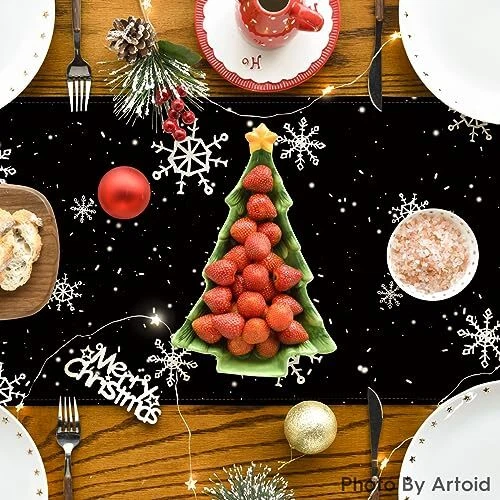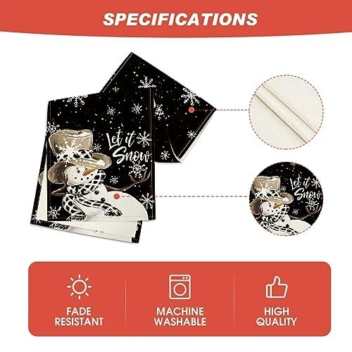Return Policy Fast Delivery Trusted seller Black Snowman Snowflake Let it Snow Winter Table Runner, Christmas Kitchen Dining Table Decoration for Home Party Decor 13x72 Inch Product Description Polyester Imported High Quality & Durable : Made of 100% spun polyester, sturdy sewing, soft and durable, protecting your table's surface from hot pans, scratches, and spills Bright Home Decor : Add flair to your home decor with colorful table runners. Perfect for kitchen dining daily use themed party decoration, holiday and special events celebration Fits Table Size : This table runner is 13 x 72 inch, appropriate for a table that can seat 4-6 people, better match your table and give you a delightful dining experience Easy to Clean : Machine wash and lay the table runner flat to dry. Stays the same and as new after every wash. Material: 100% Polyester, no shrink, no fading. Imported, Country of origin: China Designed with You in Mind : table runners are designed by professionals. Vibrant color and unique pattern print offers you creative and unique idea to decorate home Shipping Returns Payment Shipping Shipping is FREE to all addresses other than APO/PO boxes in the lower 48 states. All our stock ships from US-based warehouses. Shipped via USPS or UPS (depending on location and package weight) Unless stated otherwise, all orders will ship within 24-72 hours of your payment being processed. Check our feedback to see the great reviews of FAST shipping we offer. Returns Seller does not accept returns Payment We currently accept payment via eBay managed payments only. Once payment is cleared, we will dispatch your shipment within 1-3 business days. Please refer to the "Shipping" tab for more information regarding shipping speed to your destination.