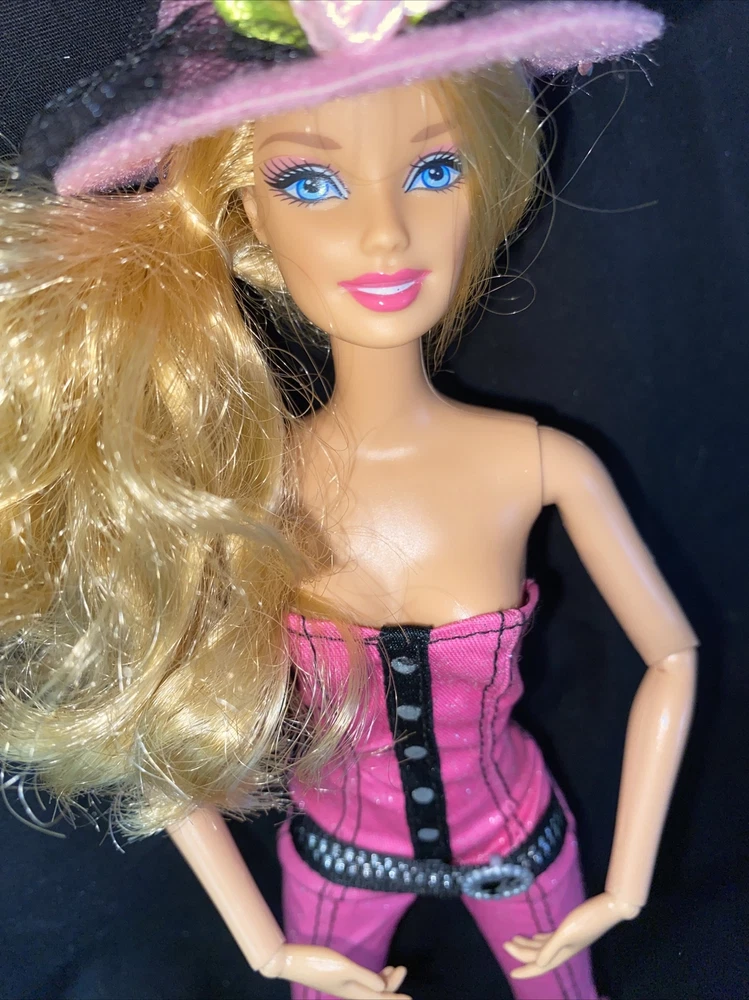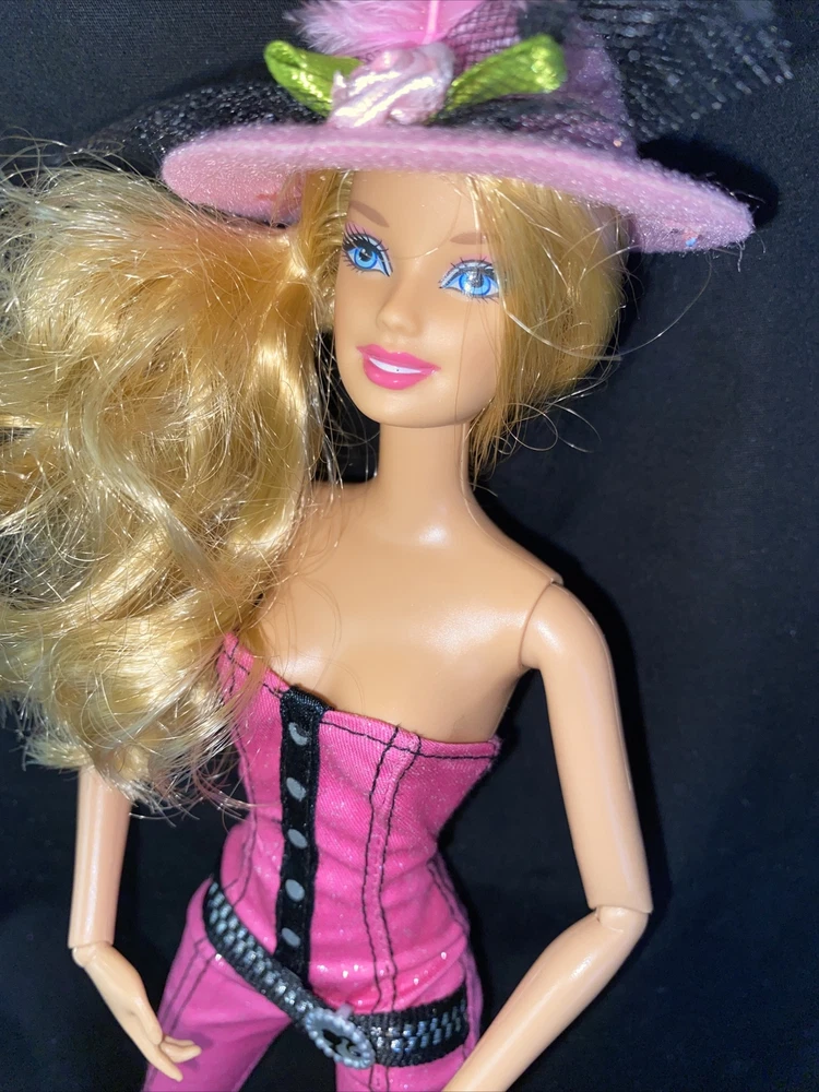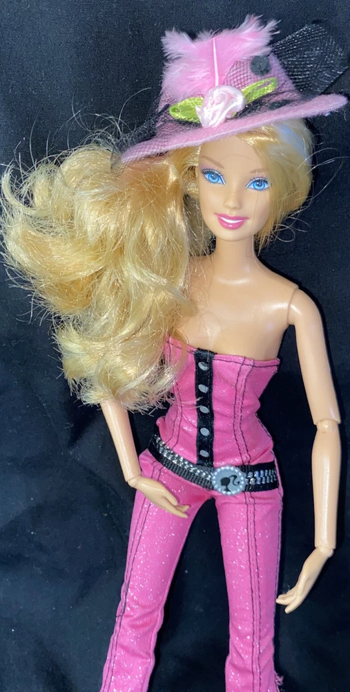 So Cute Barbie Doll Sparkly strapless pink belted Outfit Fedora and boots