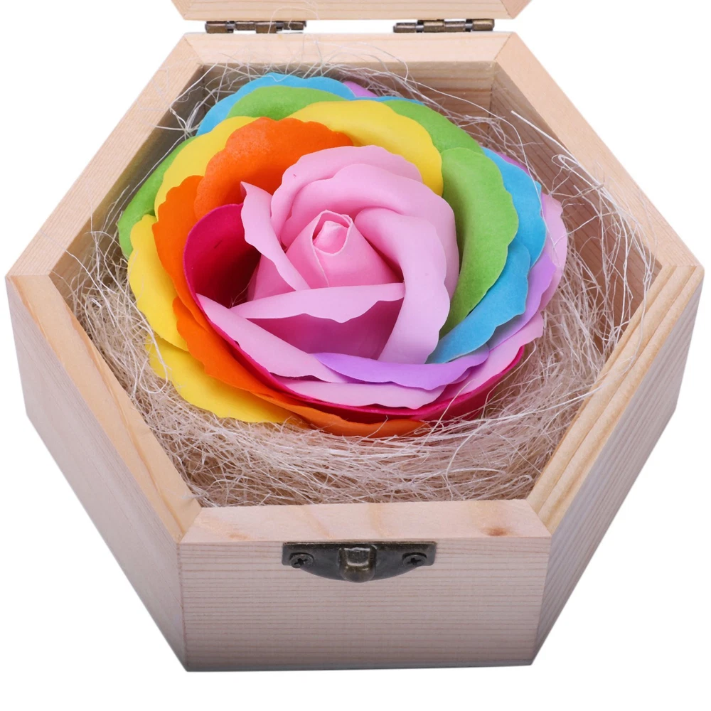 Soap Flowers Gift box for birthday Gifts Teacher's Gifts Five layers of9018 The soap flowers have such a soft and core ,as same as our kindly teacher. Your lovely flower will be protected for a long time by our wooden box which is included. You teacher,your girl friend ,your and all you love will keep long time for this teacher's gift. The note cards fit perfectly inside . Any friend or relative is sure to be deeply touched by your gift, even years later. The flower is made of soap. You can use it to wash your hands. We recommend picking one petal off at a time to wash your hands with. Comes with wooden box to help protect and preserve your flower. size:13*13*7CM/5.12*5.12*2.76 inch material:Soap+Wood colour:Five layers of powder packing:1*Soap Gift box Note: Light reflection and different displays may cause the color of the item in the picture a little different from the real thing. The measurement allowed error is +/- 1-3cm.