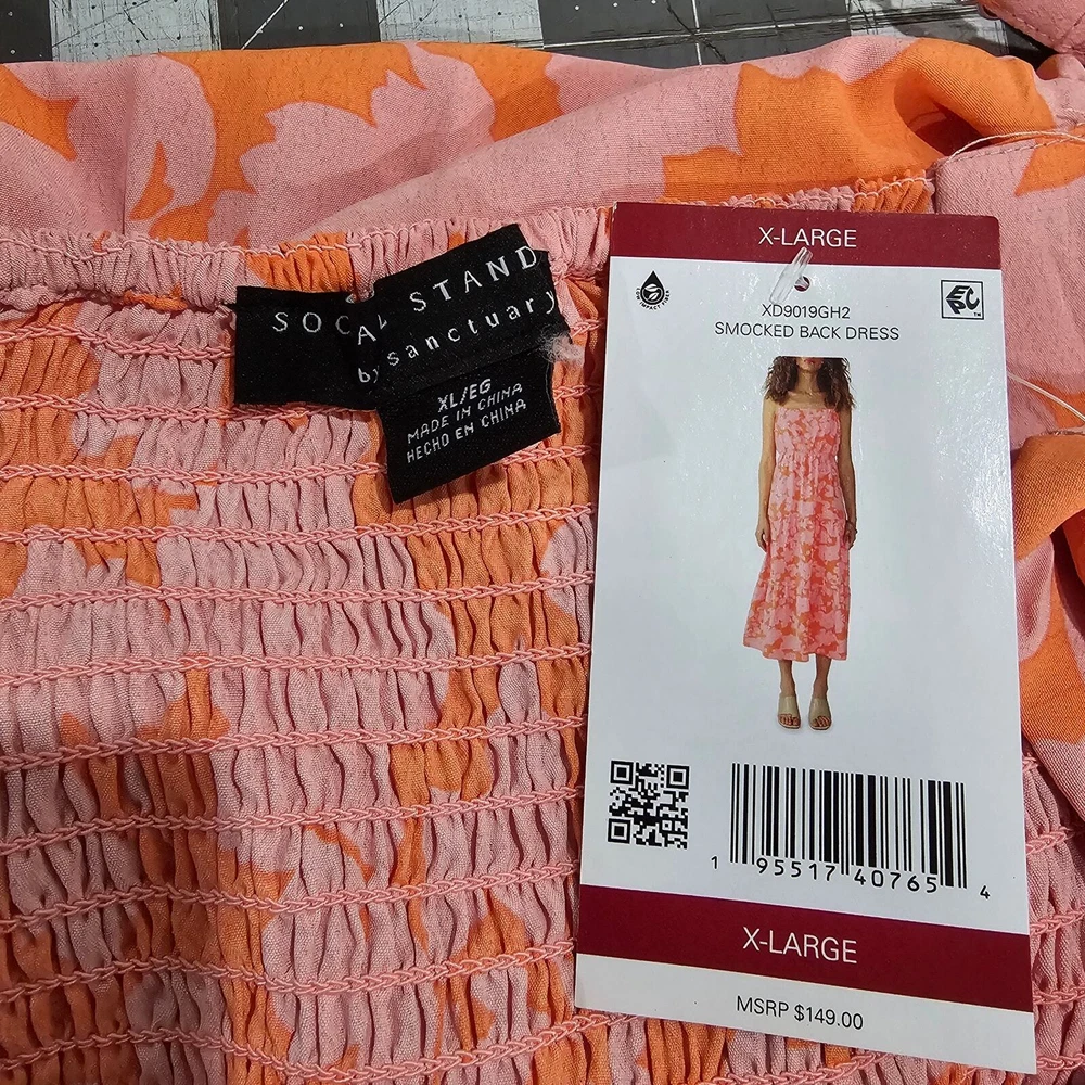 Social Standard by Sanctuary Smocked Back Dress Size XL Pink Maxi Tiered Floral New with tags Stretchy Adjustable Spaghetti straps, ruched back Orange with pink flowers allover 100% polyester Same day / next day shipping Offers accepted Thank you! 0324 11oz #boho #floral #Sundress