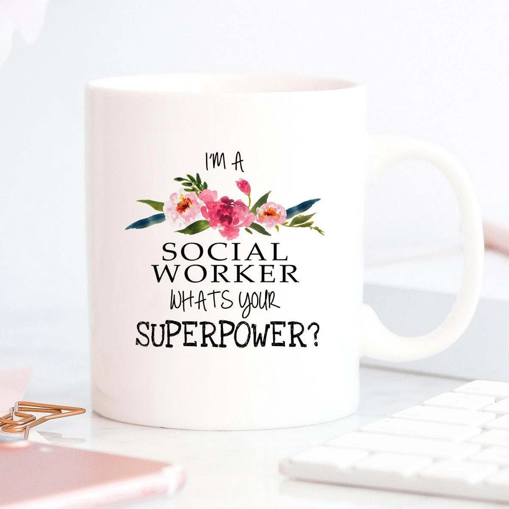 Social Worker Mug Social Worker Gift Coworker Gift Coffee Mug Social Work Gift Product Details.. This high quality 11oz. ceramic white mug has a premium hard coat that provides crisp and vibrant color reproduction sure to last for years. Perfect for all hot & cold beverages. The highest quality printing possible is used. It will never fade no matter how many times you wash it. Material: 100% Ceramic. Print both sides. Dishwasher and Microwave Safe. High Gloss + Premium White Finish. Printed in the U.S.A. Personalized & Custom. We support personalized and custom mug to add custom, when placing an order, you can add notes to the "order note" in shipping address section. Also you can contact us directly via message. Shipping Info. Ready to ship in 1 to 2 business days, All products are made-to-order and proudly printed in the United States. Shipped by USPS and DHL, You will receive your order in 5-7 days. Replace & Refund. All products are defective during shipping broken, chipped will be replaced free of charge. You are not satisfied with the product, we will refund 100% money to you. If any other issues arise, please do not hesitate to message, we would be more than happy to assist you.