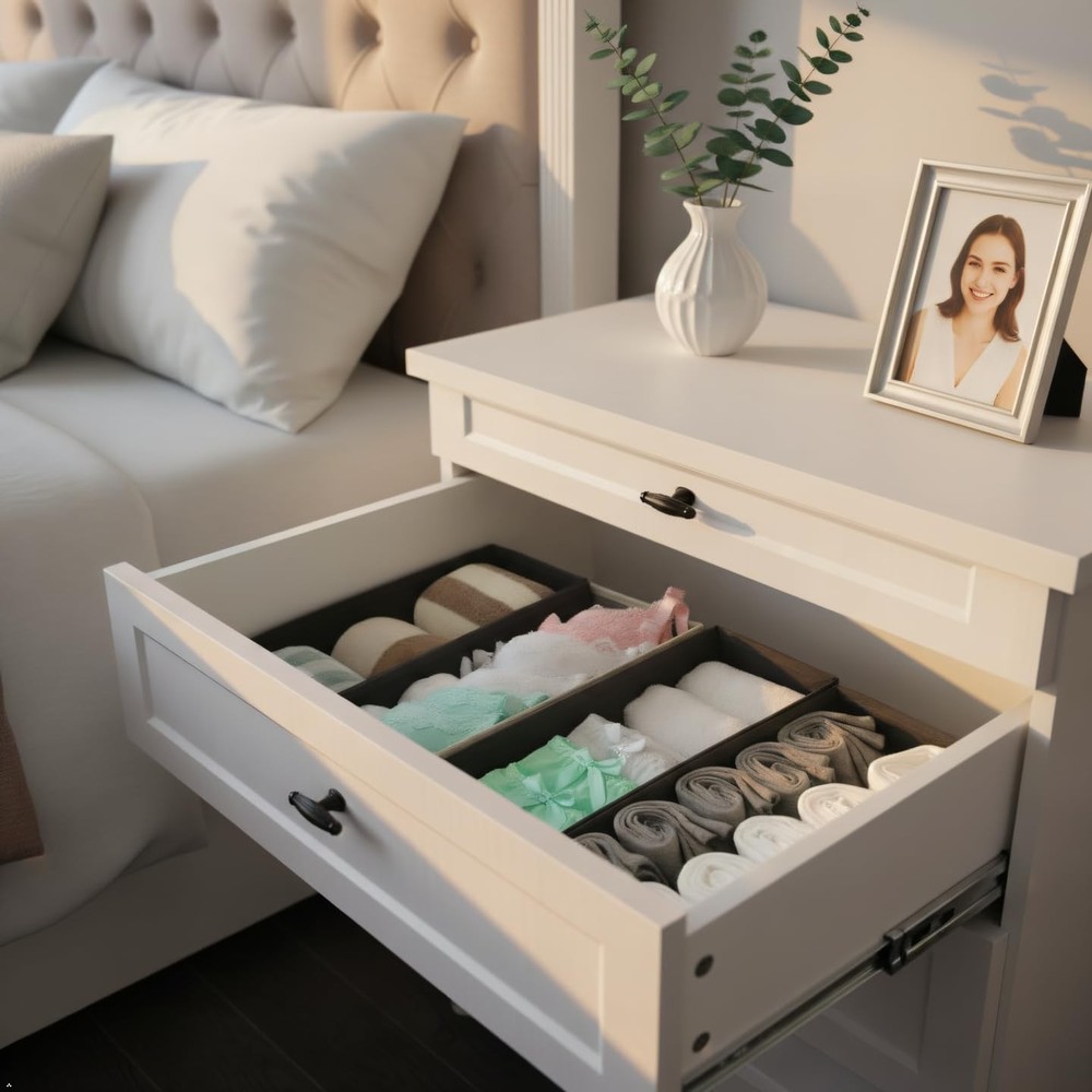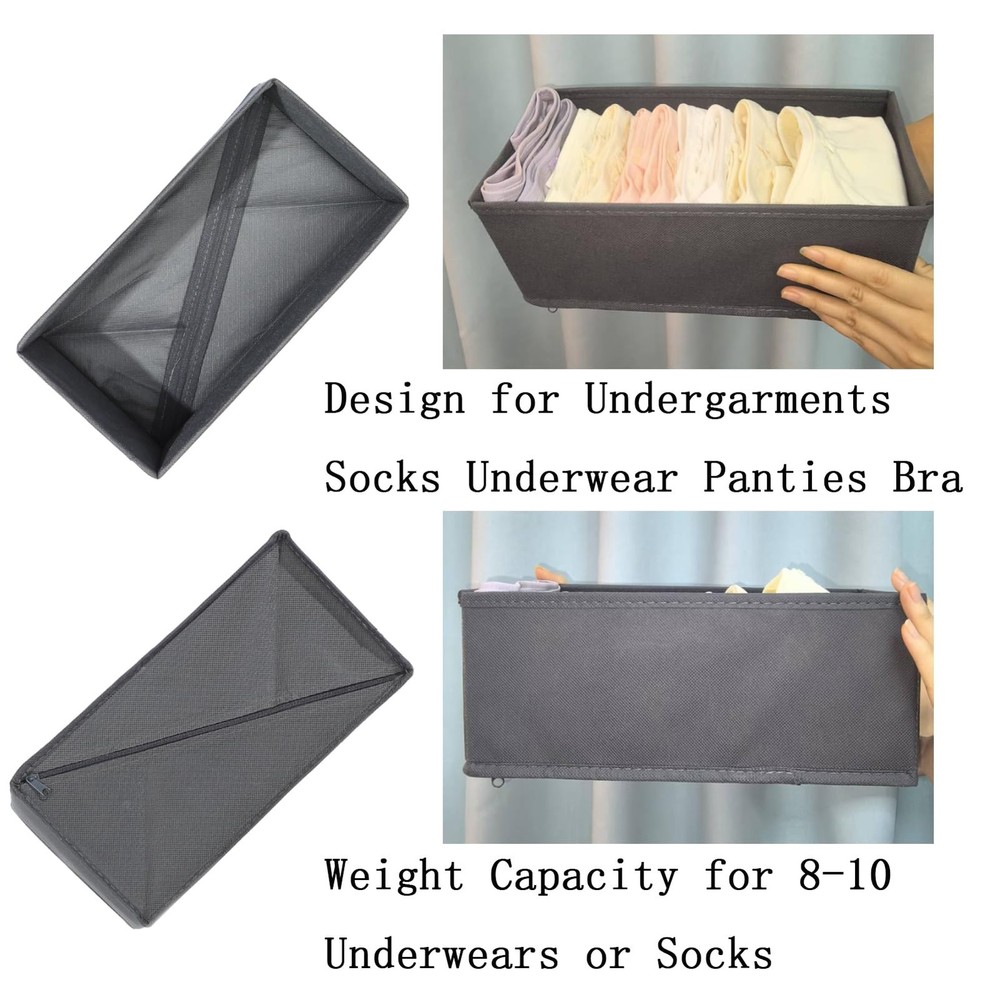 Transform your messy drawers into organized spaces with the Sock Drawer Organizer Set. This pack of fabric organizers is designed to bring order and efficiency to your daily routine. **Perfect Size & Fit** Each organizer measures 11" x 5.5" x 4.8" and holds 8-10 pairs of socks or underwear. Designed to fit drawers with minimum 4.8" depth, these organizers work perfectly in bedrooms, closets, wardrobes, and dressing areas. **Versatile Storage Solution** Ideal for organizing socks, underwear, ties, belts, handkerchiefs, hair accessories, and baby clothes. The separate compartments make finding items quick and effortless, saving you time every morning. **Durable Construction** Made with sturdy nonwoven fabric and reinforced hardboard walls to maintain shape and stand upright. Features bottom zipper for easy expansion and collapse, plus oxford fabric edges with reinforced stitching for long-lasting durability. **Easy Care & Maintenance** Simple to clean - just wipe with a damp cloth or wash with water. Machine washable for thorough cleaning when needed. Stain-resistant material keeps organizers looking new. **Space-Saving Design** Collapsible design allows for compact storage when not in use. Simply zip up the bottom to flatten for easy storage. When needed, unzip and the organizer springs back to full shape. **What You Get** 3/6/9 fabric drawer organizers (11" x 5.5" x 4.8" each) Durable construction with reinforced walls Bottom zipper for easy setup and storage Perfect for any drawer or closet organization needs Upgrade your storage game with - where organization meets functionality. 【3-Pack Value】Complete Organization Set Get 3 collapsible fabric storage bins in one convenient package. Organize multiple drawers or share with family members. Each bin folds flat for compact storage when not in use. 【Smart 3-Compartment Design】Never Lose Socks Again Three separate sections keep pairs together and prevent mismatching. Perfect for organizing socks by color, type, or family member. Also ideal for underwear, tights, and small accessories. 【Drawer-Perfect Dimensions】11" x 5.5" x 4.8" Specifically designed to fit standard dresser drawers without wasting space. The low 4.8" height allows for stacking or use in shallow drawers. Fits drawers as small as 12" deep. 【Premium Fabric Material】Durable & Easy Clean Constructed from high-quality non-woven fabric that maintains its shape. Reinforced with cardboard walls for structural integrity. Simply wipe clean with a damp cloth - no complicated washing required. 【Multi-Room Versatility】Beyond the Bedroom Use in closets for scarves and belts, in bathrooms for toiletries, in nurseries for baby items, or in offices for supplies. The neutral color works in any room of your home.