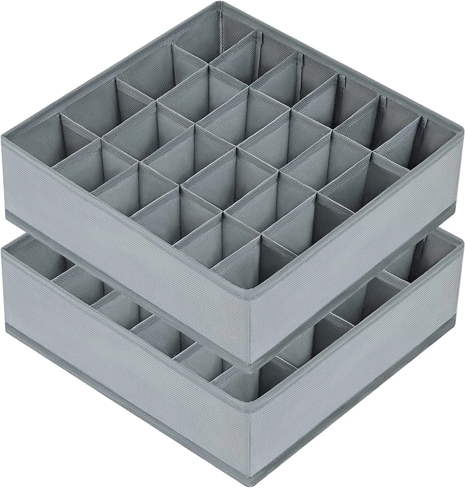 Included Components: 2 Sock Drawer Organizer Special Features:  Collapsible Item Length: Does not apply Number of Items: 2 Specific Uses For Product: Storage Socks Shape: Square Customer Package Type: Standard Packaging Product Dimensions: 11.81"D x 11.81"W x 3.54"H Item Package Quantity: 1 Capacity: 2 Pounds Finish: No Part Number: LF001 Is Discontinued By Manufacturer: No Mounting Type Freestanding: Item Weight 0.63 Pounds Brand: Does not apply Finish Type: No Batteries Included?: No UPC: 313049017008 Material: Non-woven fabric Size: 2*24 cells Batteries Required?: No gtin13: 313049017008 Item model number: LF001 Country of Origin: China Item Weight: 10.1 ounces Type: Does not apply Color: Grey Item Width: Does not apply Number of Compartments 24: Unit Count 2 Count Special Feature:  Collapsible Item Height: Does not apply