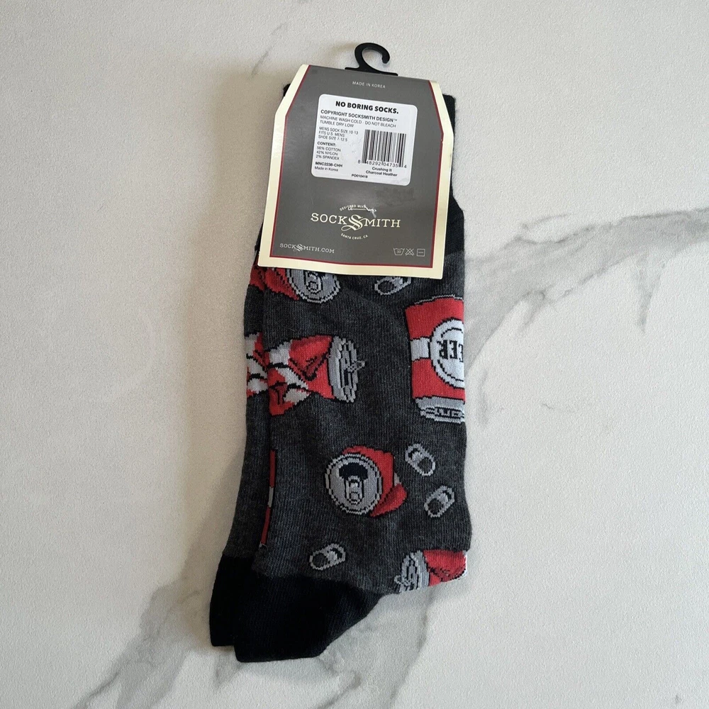 Elevate your sock game with these Socksmith Men's Crew Socks featuring a fun and unique beer can design. Perfect for casual occasions, these socks come in a charcoal heather grey color and are made from a comfortable cotton blend material. The one size fits most size type ensures a comfortable fit for men with shoe sizes ranging from 7 to 12.5. Machine washable for easy care, these socks are perfect for all seasons and can be worn in winter, summer, fall, and spring. The fun and hipster design makes them a great gift for the beer-loving dad in your life. Add these socks to your collection and enjoy the comfortable and stylish wear they provide.
